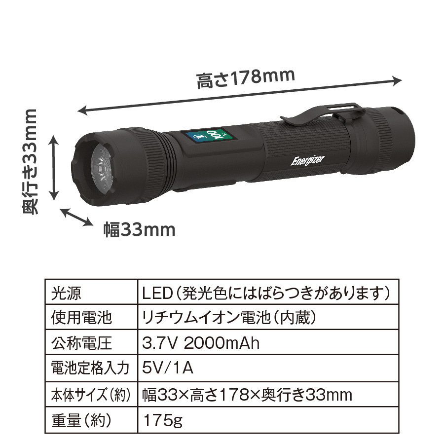 デジタルインジケーター付き充電式ハンドライト BGHHL8 [LED /充電式 /防水対応]