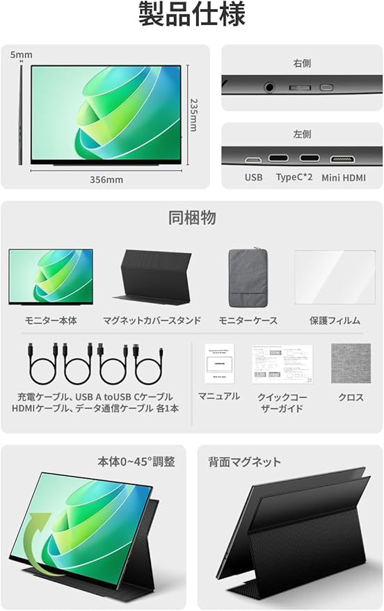 USB-C接続 モバイルモニター (タッチパネル) SP-160TF [16型 /WUXGA(1920×1200) /ワイド /60Hz]