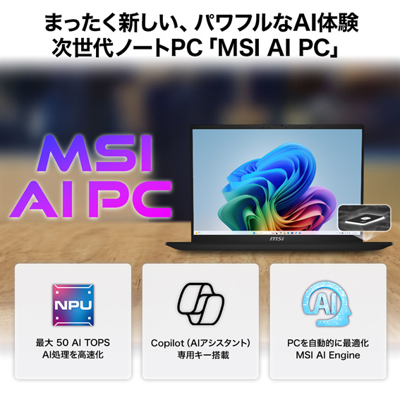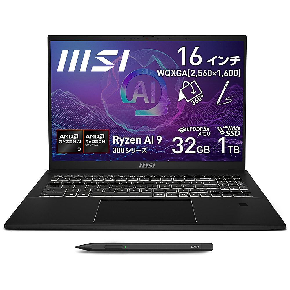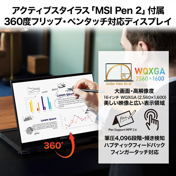 Summit A16 AI+ A3HMで次世代AI PC時代の到来に備えましょう。「AMD Ryzen AI 300 シリーズ プロセッサー」が実現する高い生産性、バッテリー効率、AI処理性能が新しいAI時代のライフスタイルをサポートします。Summit A16 AI+ A3HMでAI機能をもっと身近に・もっと便利に活用できるだけでなく、MSI独自開発アクティブスタイラス「MSI Pen 2」によりイラストやデザインなどクリエイティブ用途でもパワーを発揮します。