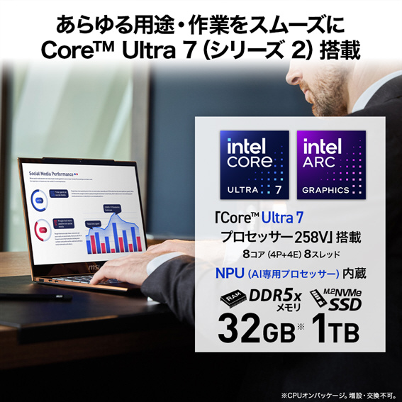 インテル Evo エディション準拠のSummit 13 AI+ Evo A2VMで次世代AI PC時代の到来に備えましょう。「インテル Core Ultra プロセッサー(シリーズ 2)」が実現する高い生産性、バッテリー効率、AI処理性能が新しいAI時代のライフスタイルをサポートします。