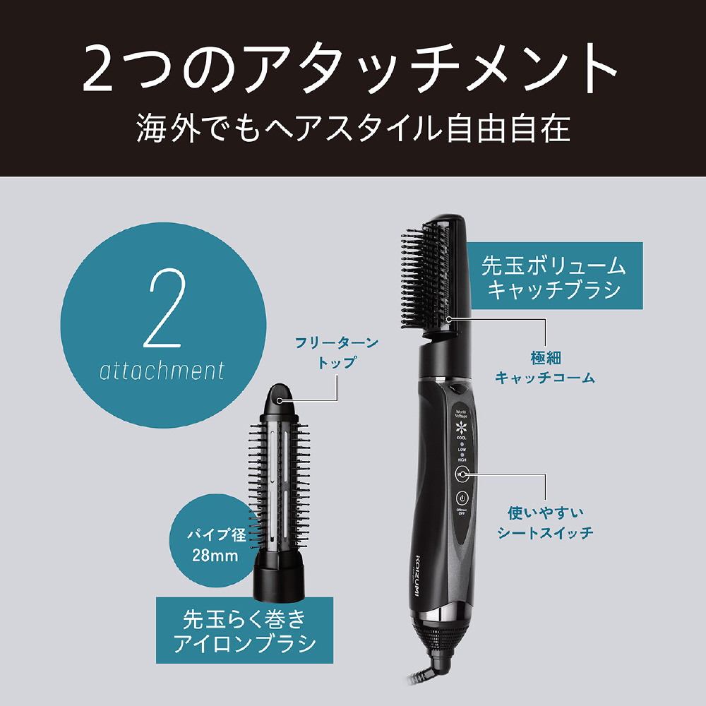 100〜120、200〜240V地域対応。海外使用OKのカーリングドライヤー