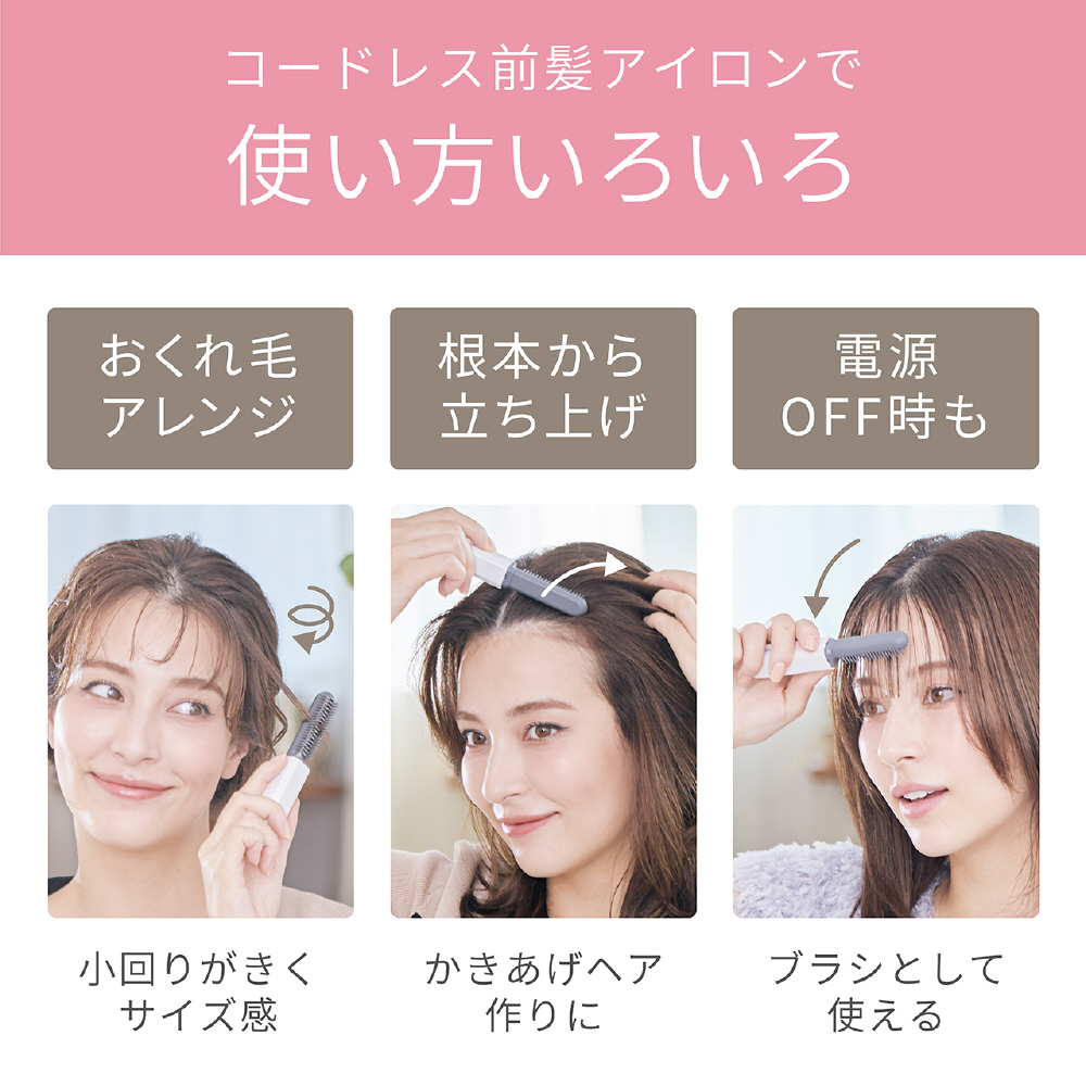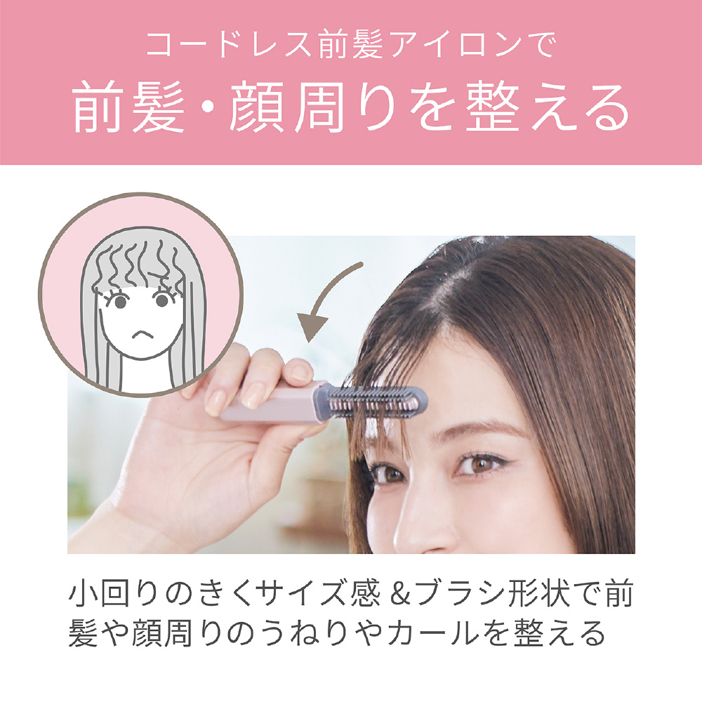 前髪の印象を整える。コンパクト×コードレスで使いやすいブラシ型ヘアアイロン