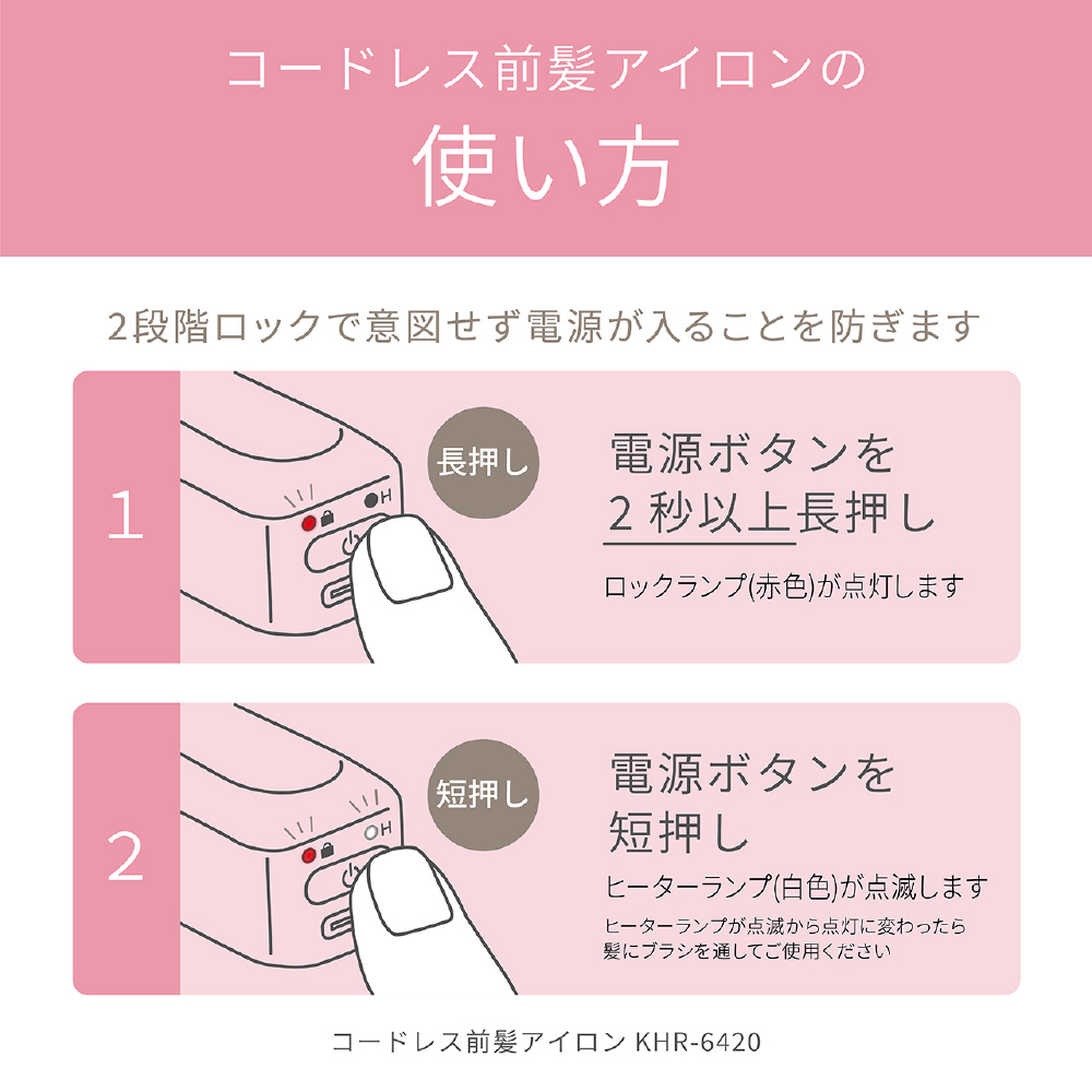 商品名 コードレス前髪アイロン KHR-6420/P [充電式]