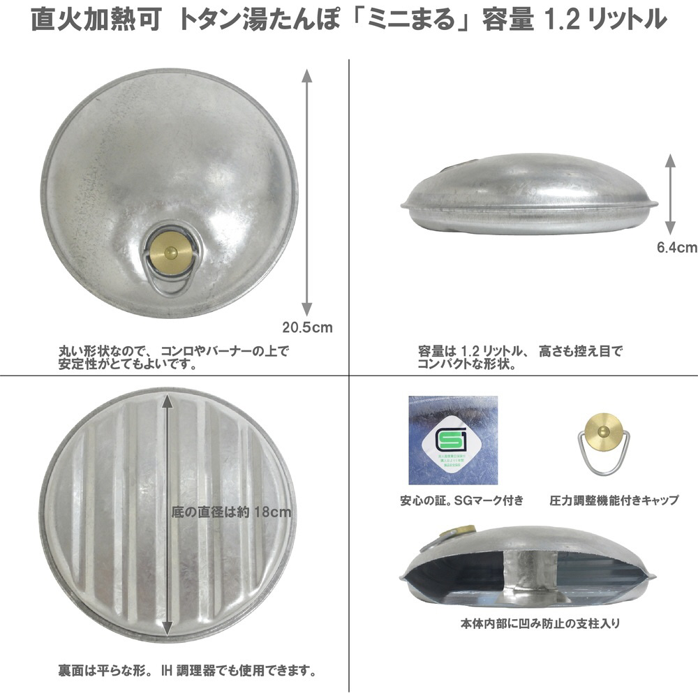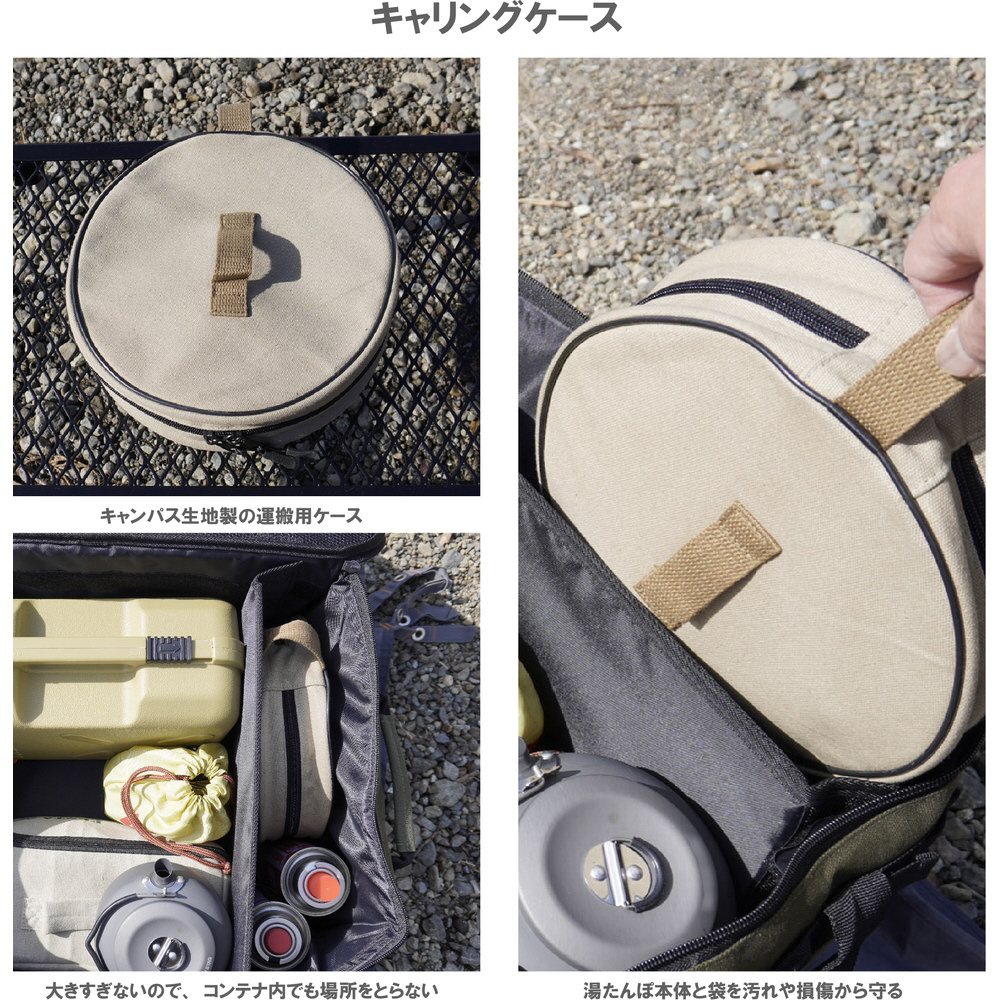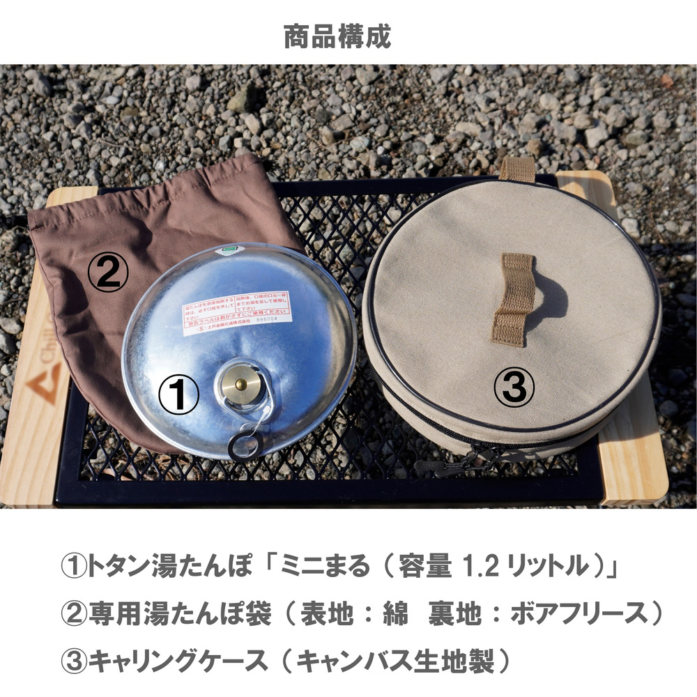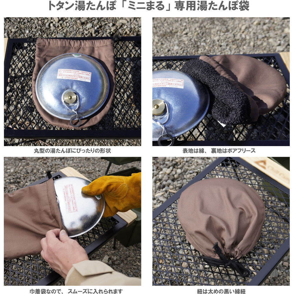 湯たんぽの内部に支柱が入っているので、凹みにくい構造です専用湯たんぽ袋は、「ミニまる」の形にフィットする形。また、熱伝導がよいトタン湯たんぽ用に、表地は綿100%、裏地はボアフリースの厚手の仕様です。キャリングケースは、丈夫なキャンバス生地製で、運搬中に湯たんぽ本体と専用湯たんぽ袋を、汚れやキズから守ります。