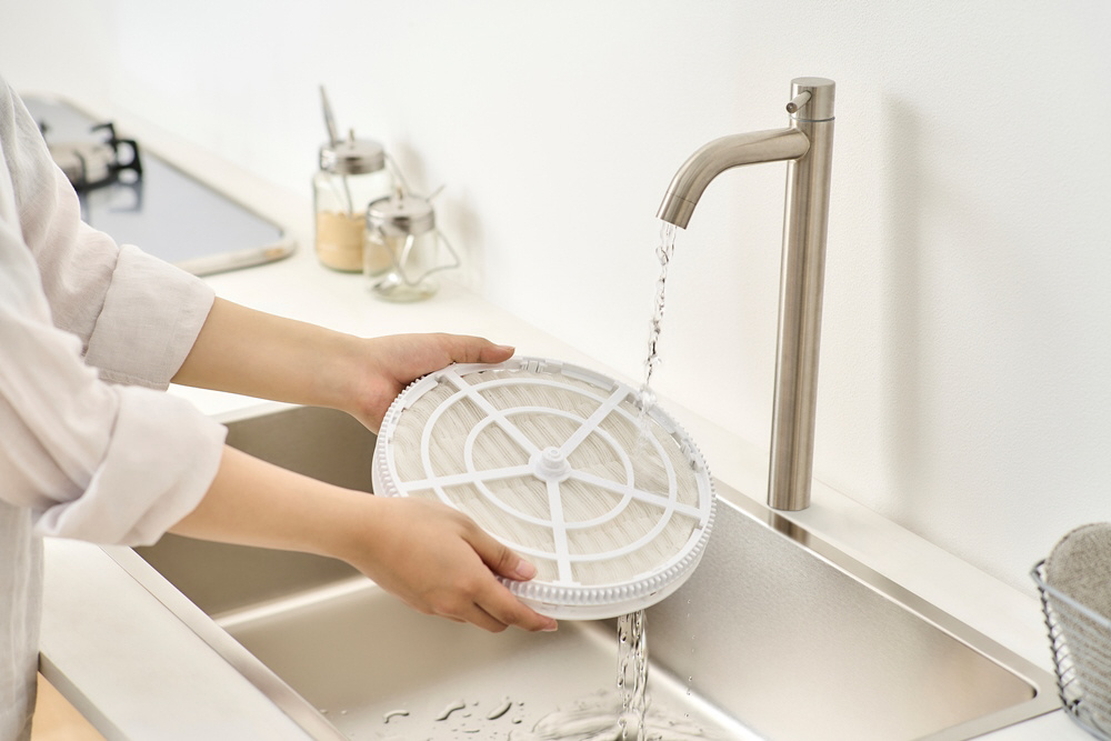 ■分解しないで、水洗いしてください。汚れが落ちにくい場合はクエン酸を使用してつけ置き洗いしてください(※水 3Lにクエン酸を大さじ2杯(約18g)