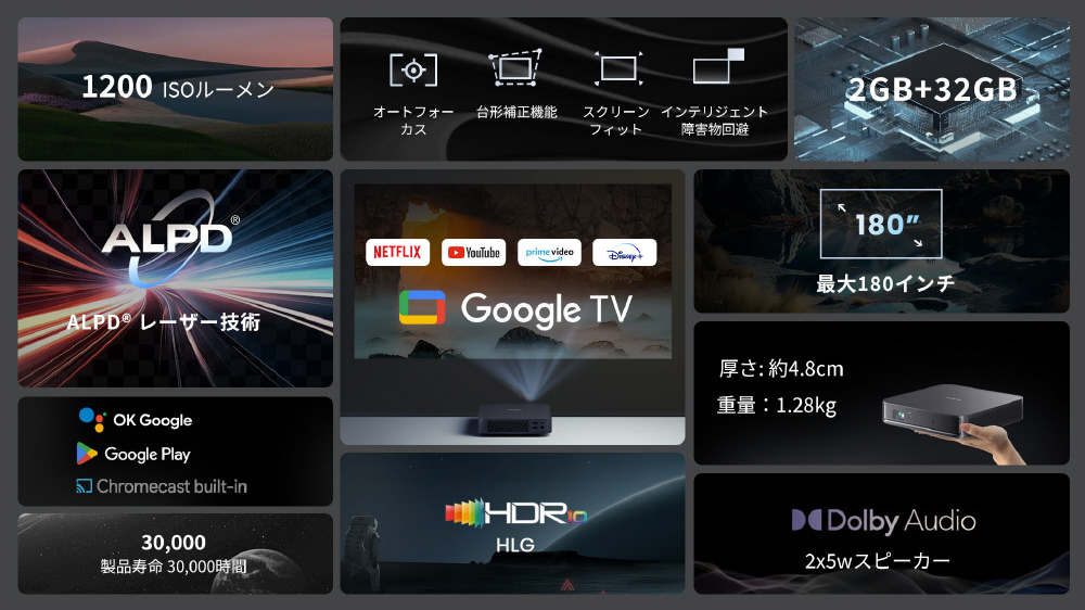 世界初GoogleTV搭載レーザープロジェクター 1200ISO超高輝度
