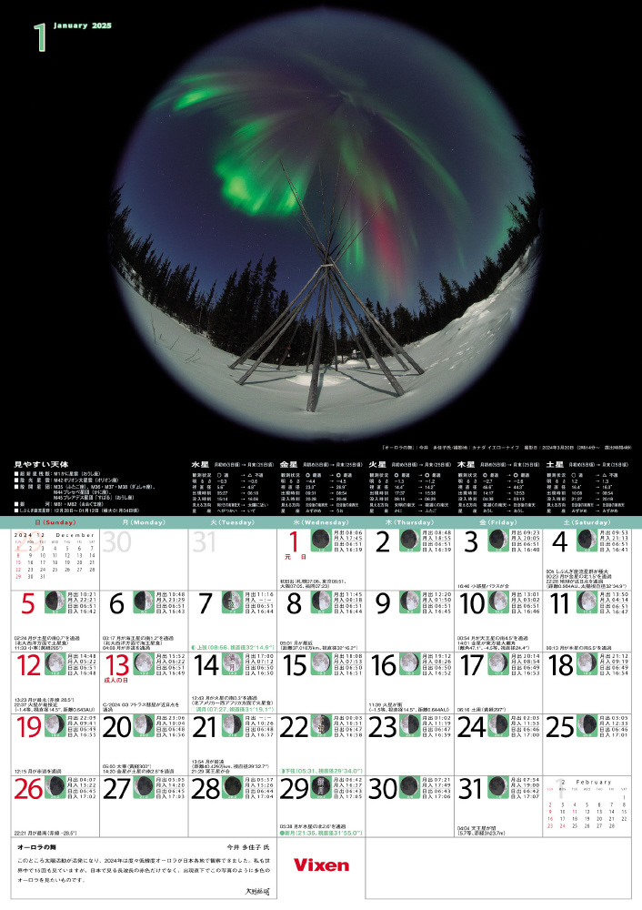 月替わりで美しい天体写真が楽しめる、ビクセンオリジナル天体カレンダー2025年版です。