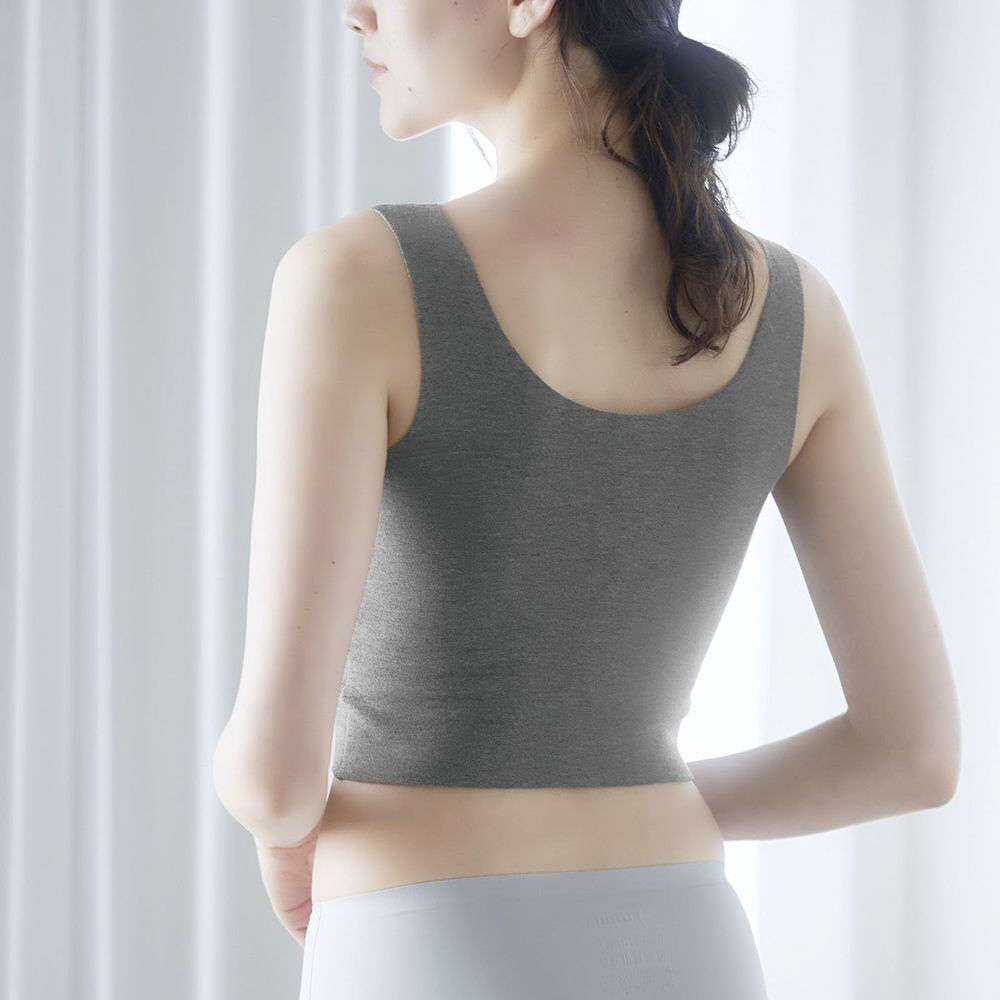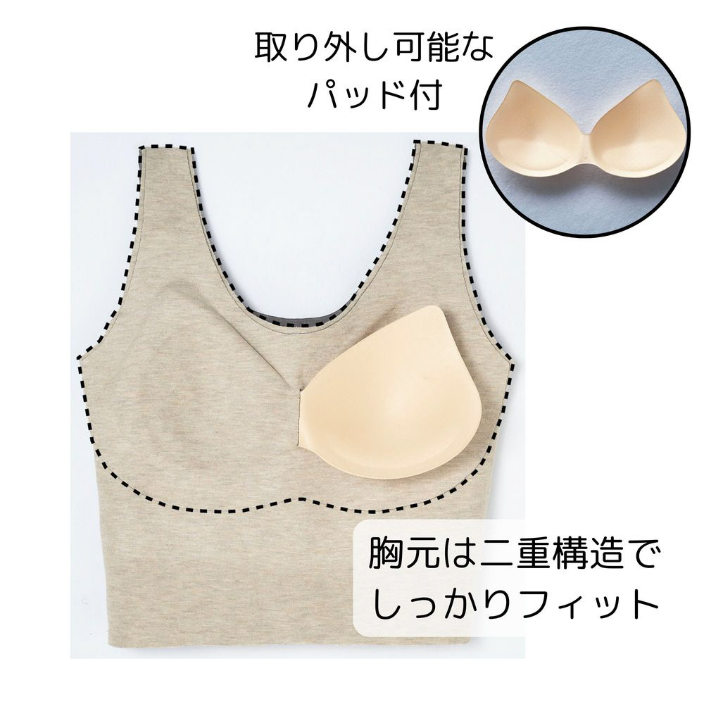 伸縮性のある生地でソフトに補整するインナーです。シームレスで快適な着心地。肌側はしっとり裏起毛で寒い時期でも暖かくすごせます。胸元部分は二重構造でしっかりフィット。寒い時期のナイトブラとしても活躍します。取外しできるパッド付です。外出時に。お家でのリラックス時に。就寝時にも。【仕様】【適応サイズ】バスト79〜94cm アンダーバスト70〜80cm
