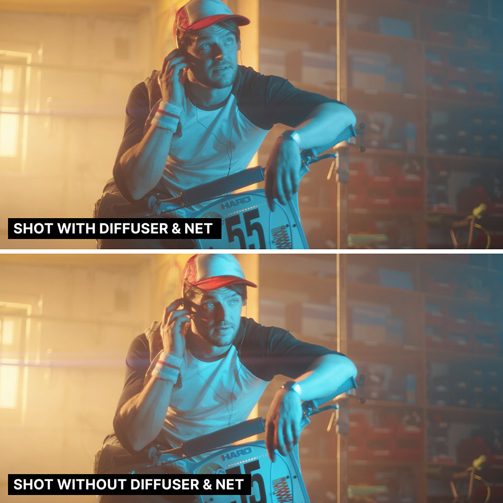 テキスタイルはシングルスクリム、ダブルスクリム、アーティフィシャルシルク、ソリッドブラックの4枚付属。「ラピッドエクソフレーム?」は16mmメス受けですが付属のグリップヘッドマウンティングピンを使用すれば10mmピンとしてグリップヘッドやエクステンショングリップアームへ取り付け可能。多彩なライティングが行えます。