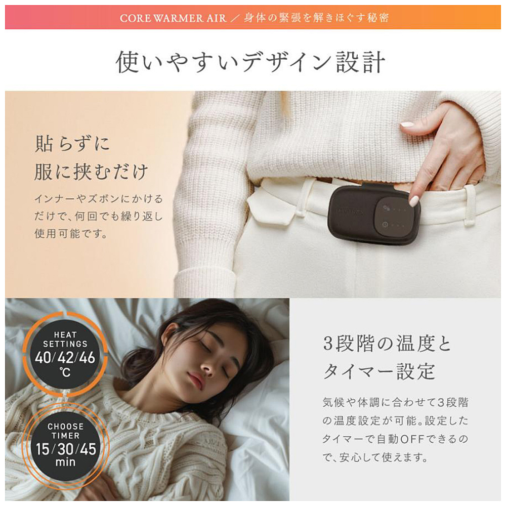 挟むだけで、スマート温活。温熱ボディウォーマー
