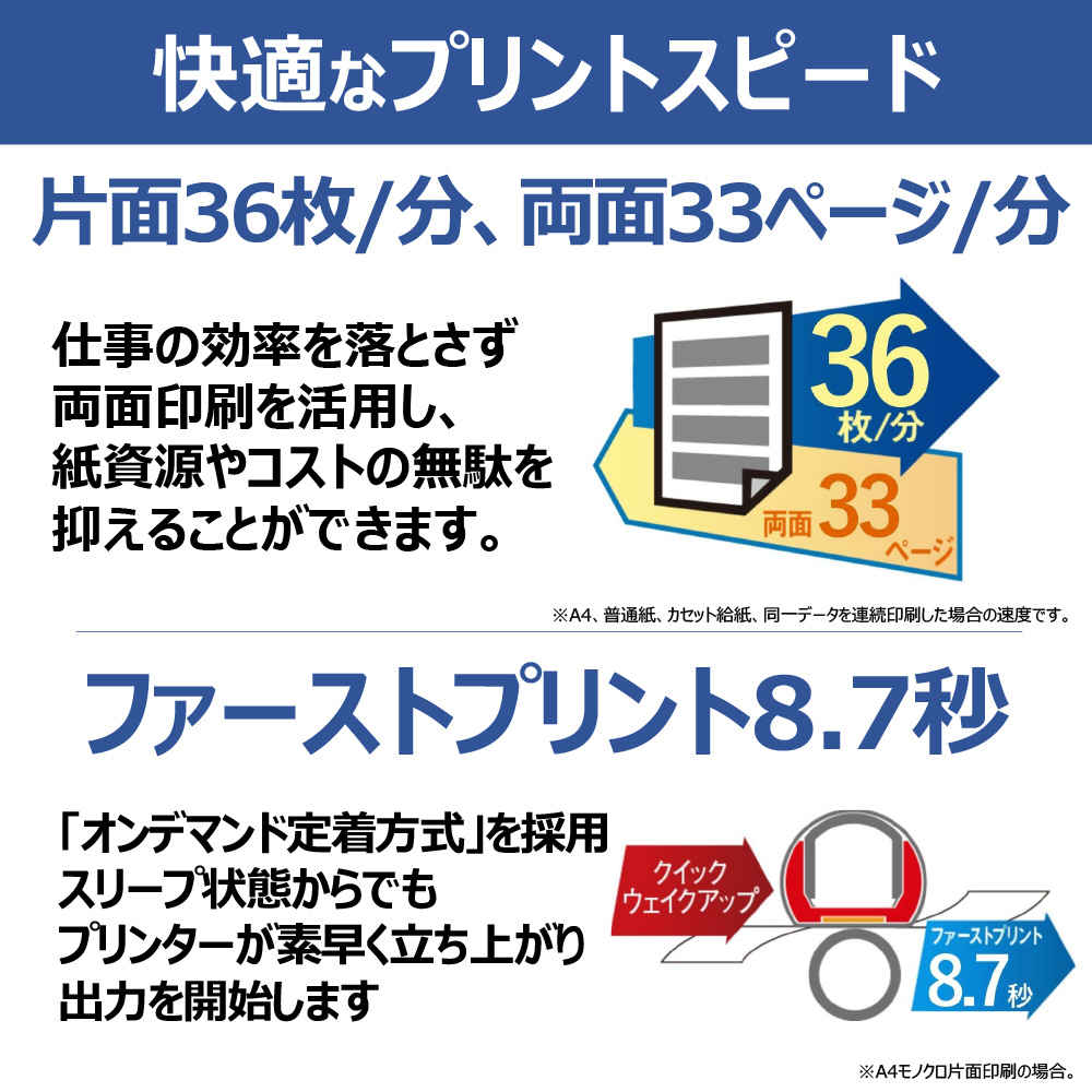 高速印刷で、帳票用紙の生産性にも優れた省スペース設計のA3モノクロプリンター。