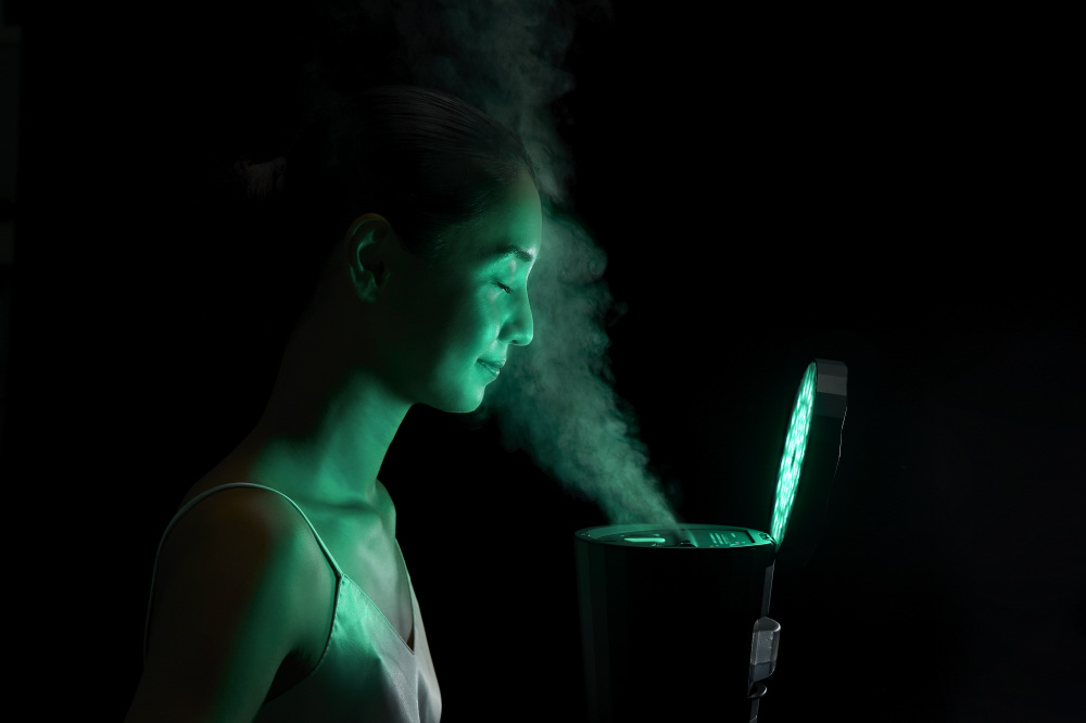 光を浴びる、美顔器スチーマー