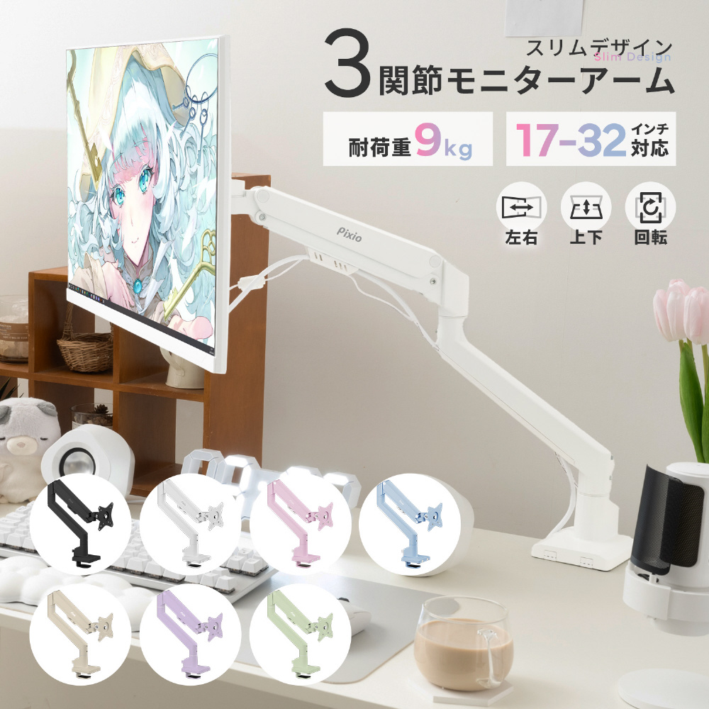 スリムデザイン、3関節モニターアーム