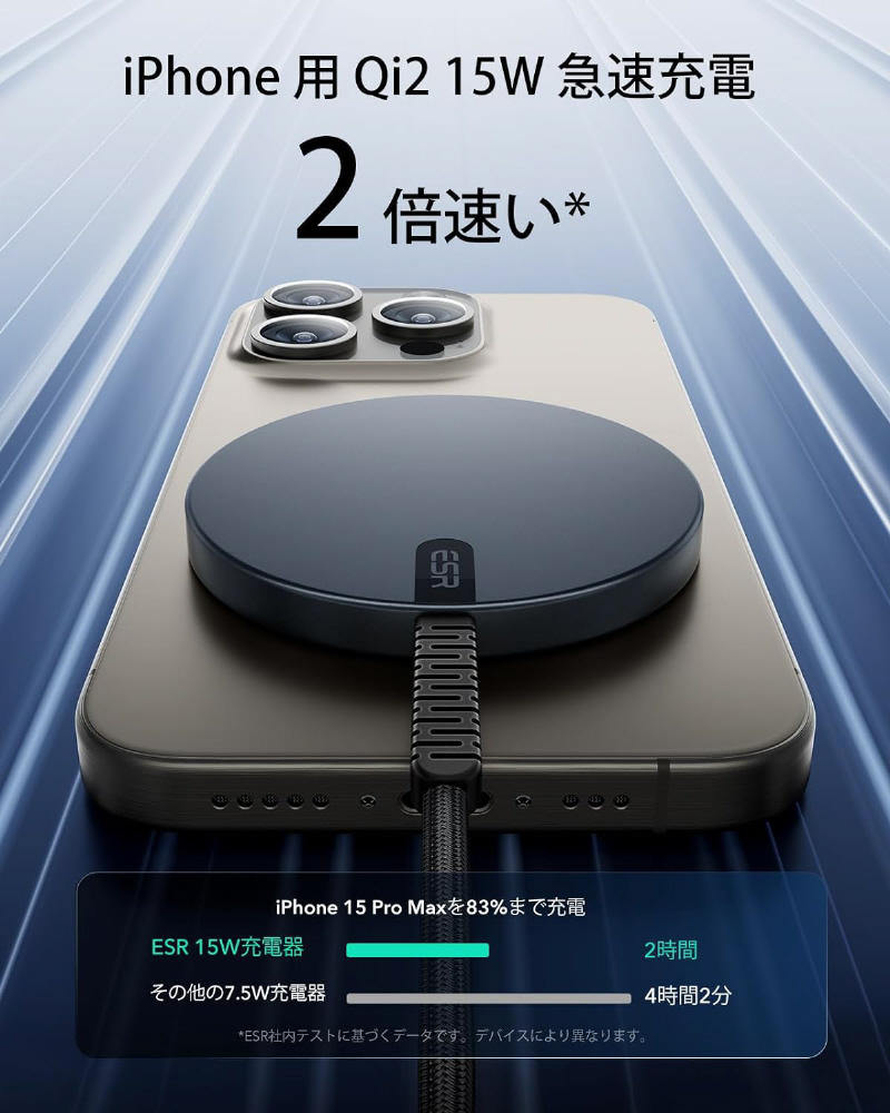 Qi2対応 ワイヤレスチャージャー ESR Black ESRQi2miniWirelessCharger