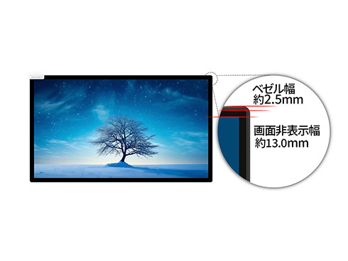 21.5インチの液晶モニターはコンパクトながらノートPCの拡張画面として快適に使用でき、テレワークなどにも使いやすいエントリーモデルです。