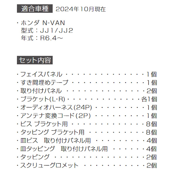 オーディオ・ナビゲーション取付キット ホンダ N-VAN用(型式:JJ1/JJ2 年式:R6.4〜) H-2251