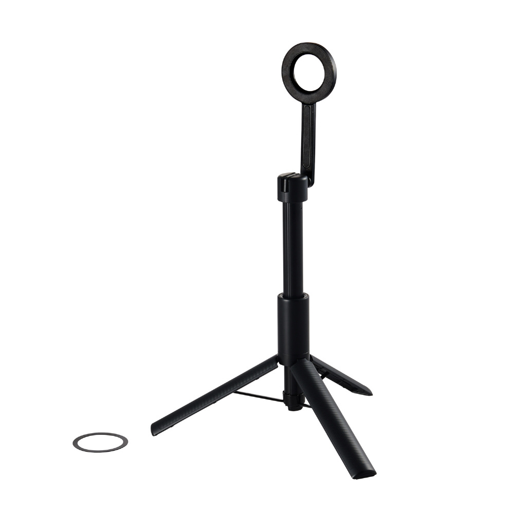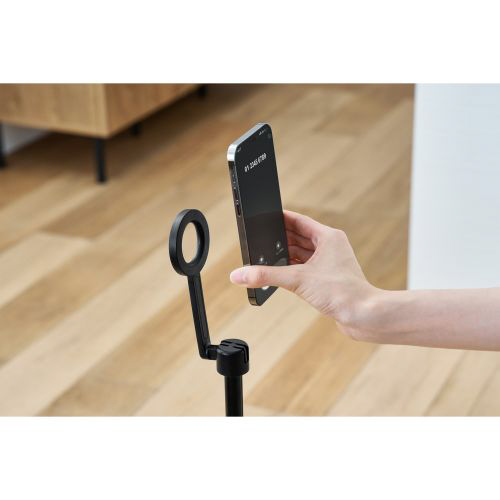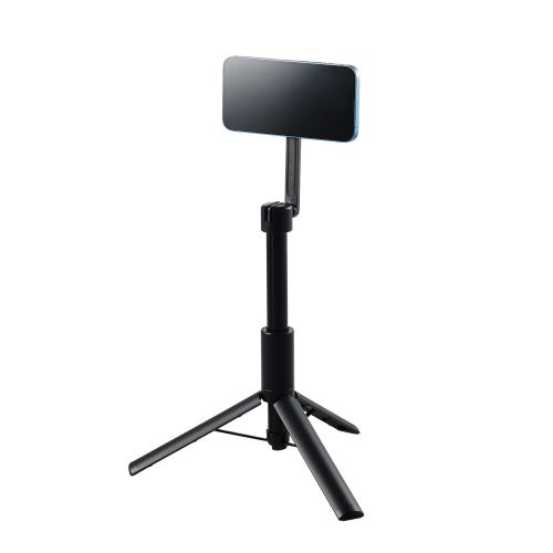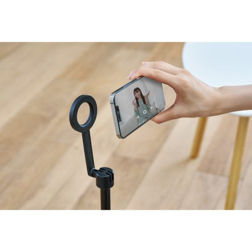 マグネットで簡単に着脱可能!床置きタイプのスマホ三脚スタンドです。付属のメタルプレートをスマートフォンケースや端末に貼り付けることで、MagSafe非対応の機種でも使用可能になります。小型に折り畳めて、軽量なので持ち運びにも便利です。