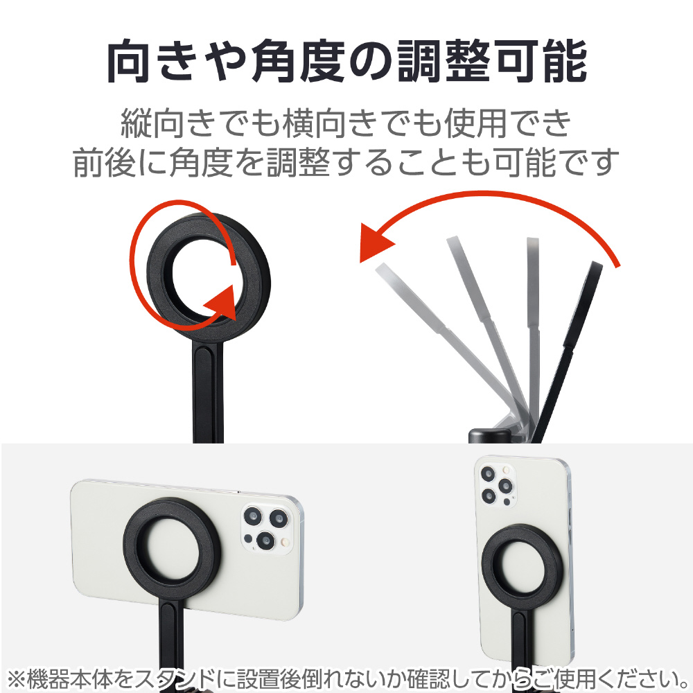 三脚 スマホスタンド マグネット 床置き 最大570mm 縦180度 横360度調節可 軽量 コンパクト メタルプレート付属 スマホホルダー ブラック P-STMFBK