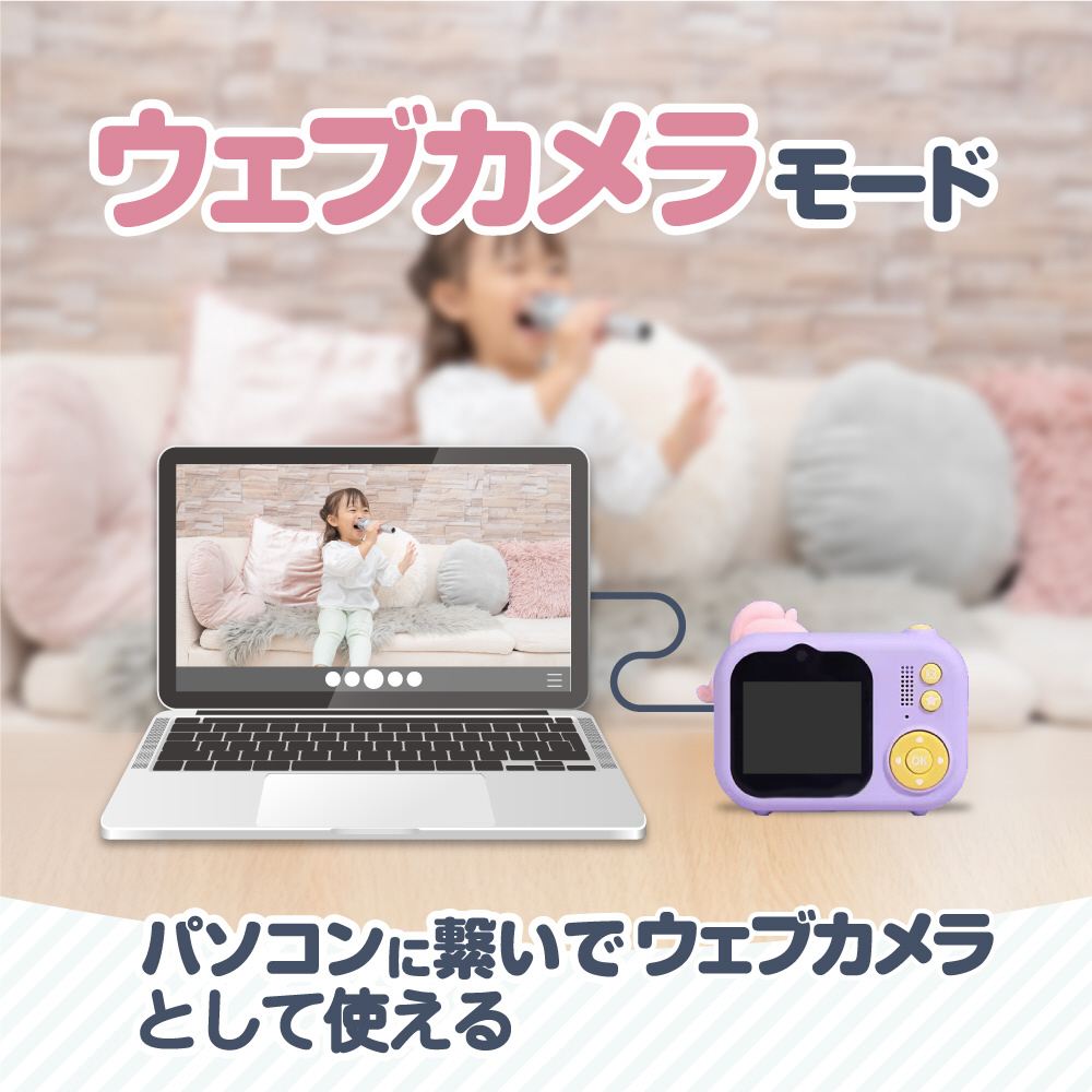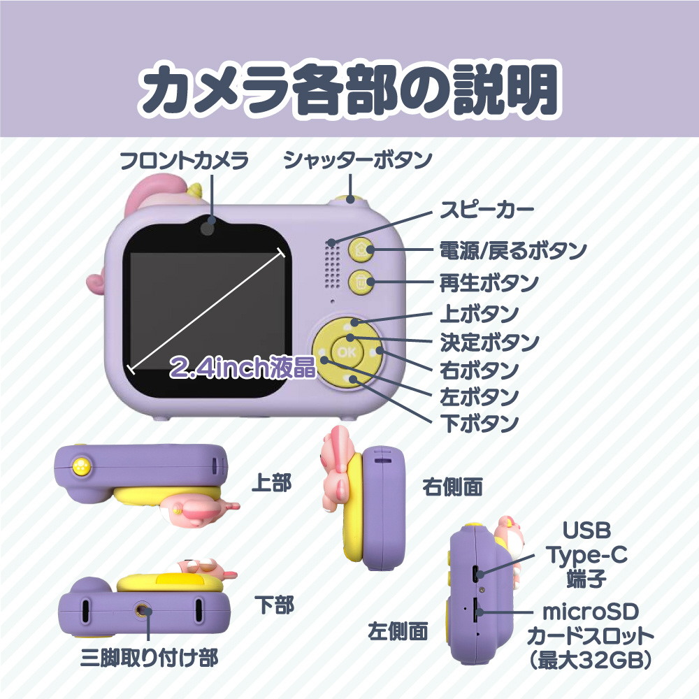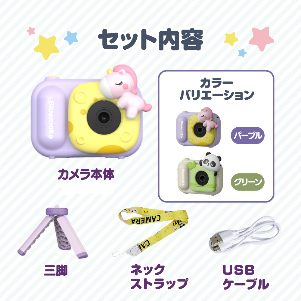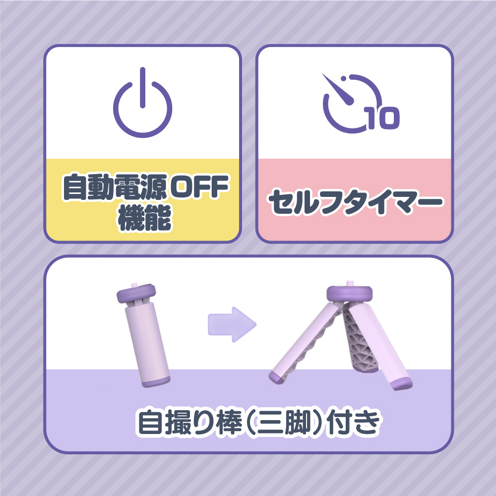 自撮り棒にもなる便利な三脚付きキッズカメラ Bluemake パープル TT-48ZU