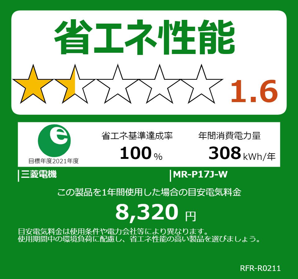 冷蔵庫 Pシリーズ マットチャコール MR-P17J-H [幅48cm /168L /2ドア /右開きタイプ /2023年]【生産完了品】