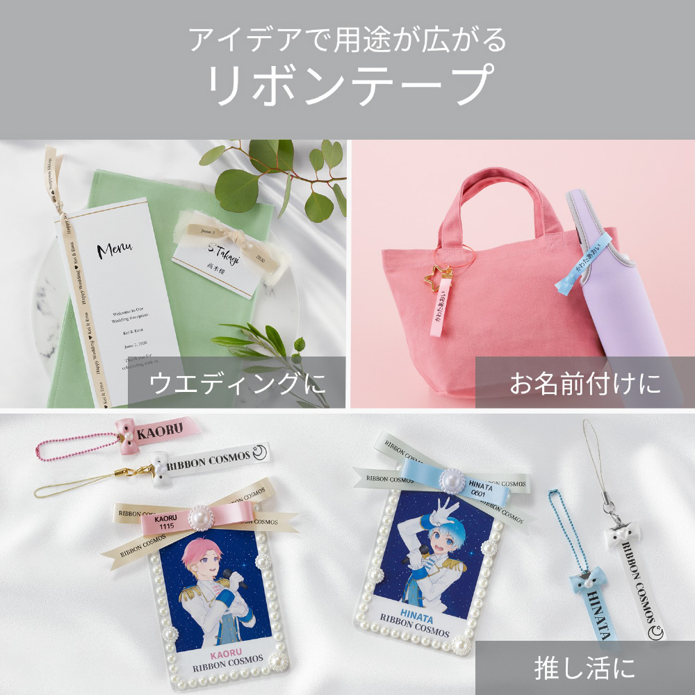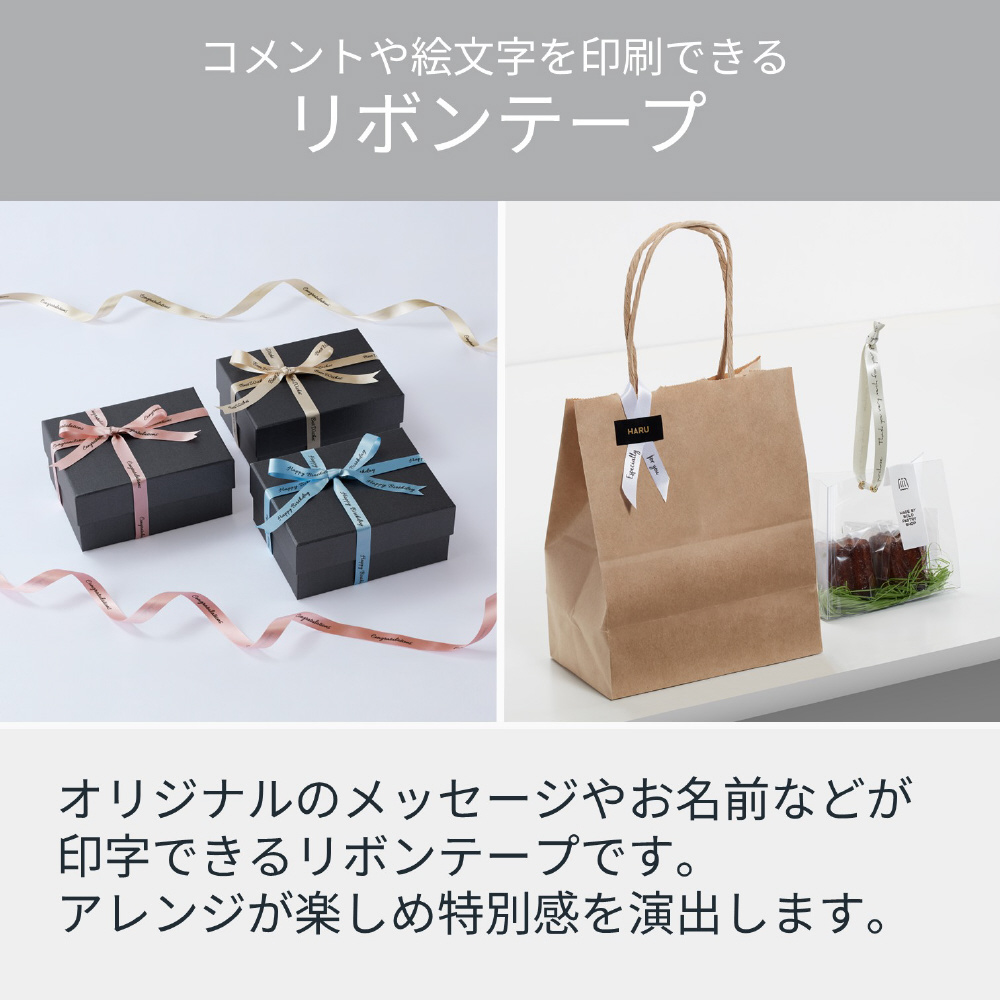 ・サテン素材のリボンに、メッセージや絵文字が印刷できます