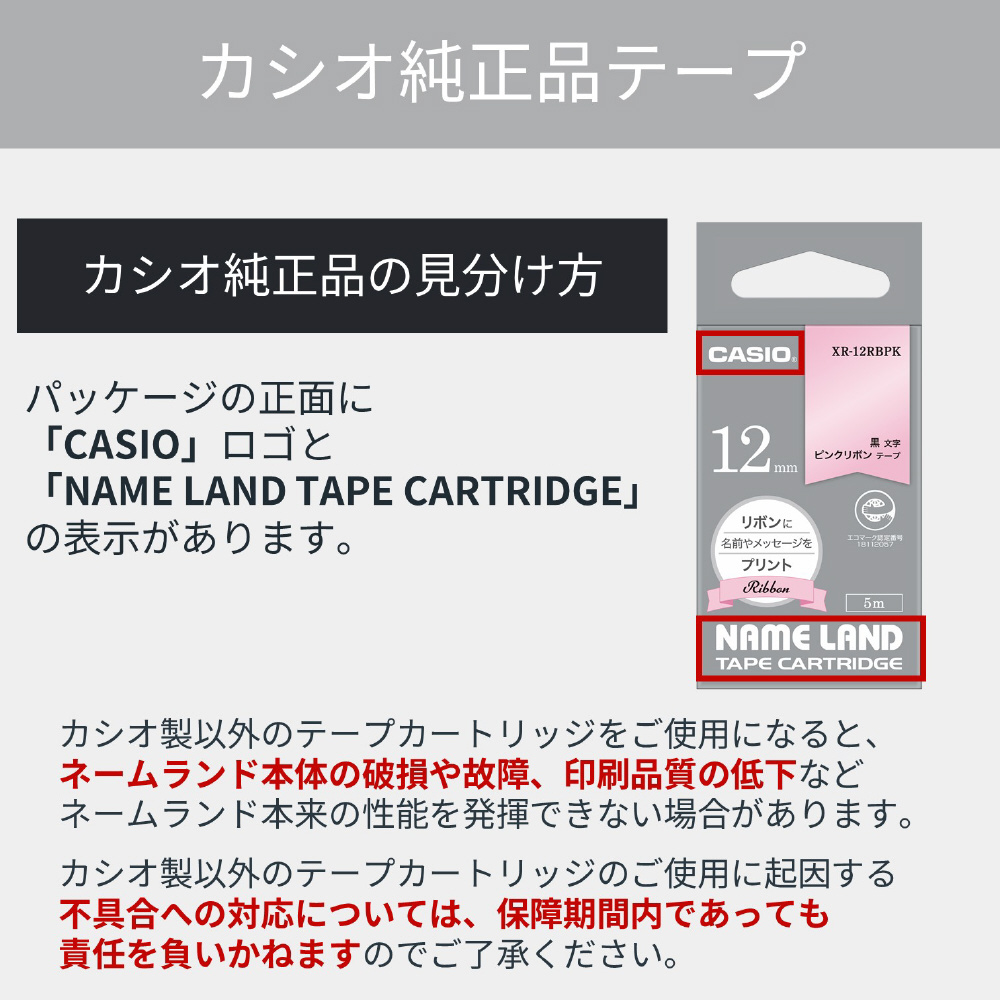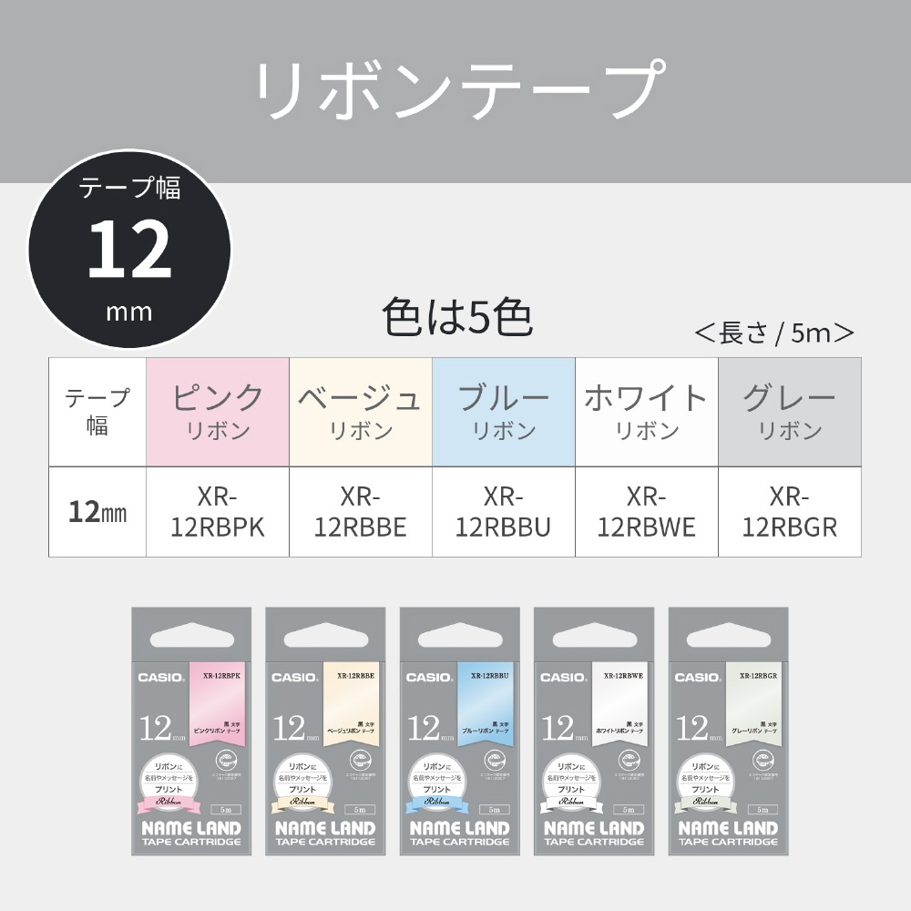 | 商品名 | ラベルライターNAME LAND用テープ リボンテープ ピンク XR-12RBPK [黒文字 /12mm幅] |