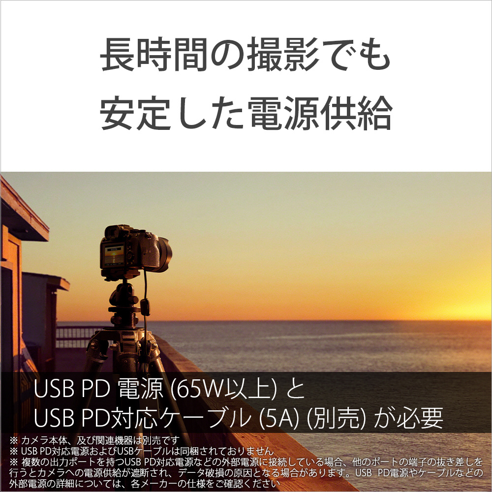 USB Power Deliveryで安定した電源供給を行い、長時間撮影が可能な、NP-FZ100、NP-FW50用DCカプラー