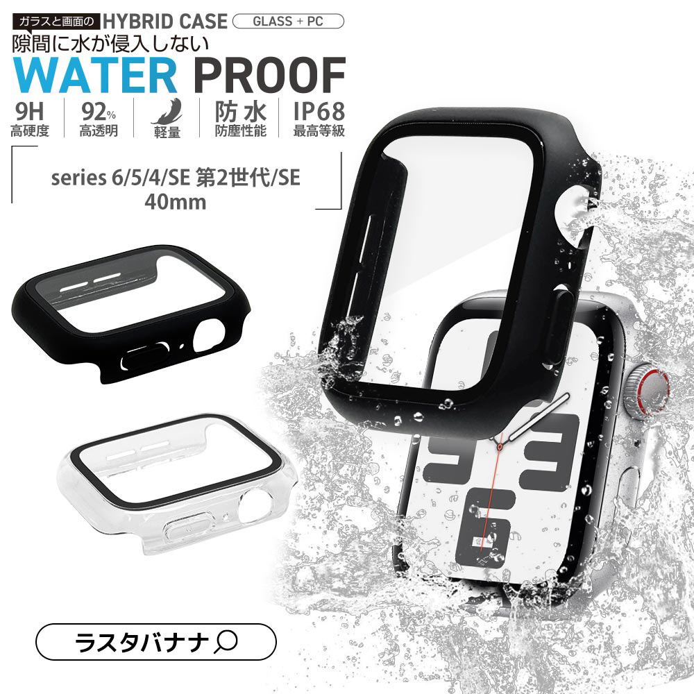 Apple Watch Series 6/5/4/SE第2世代/SE 40mm用 ガラス+PC一体型 防水ケース IPX68 ブラック GHB4622AW40