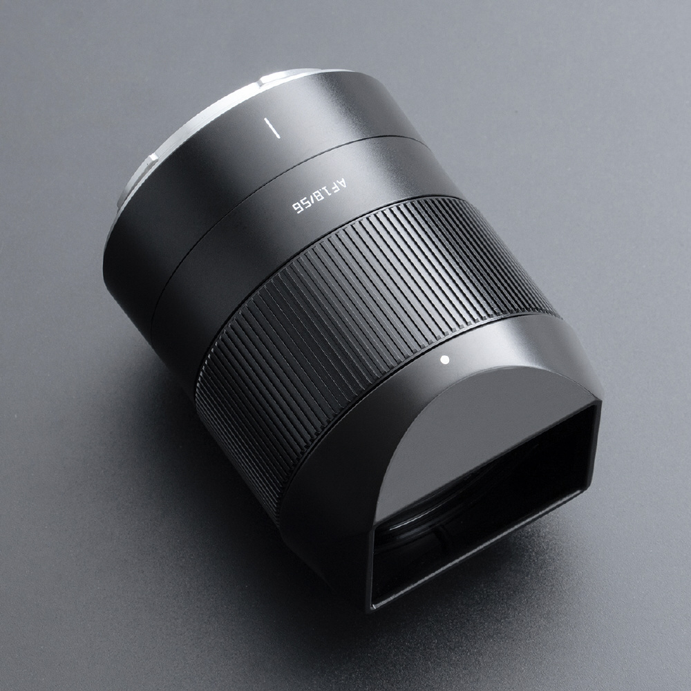 銘匠光学(めいしょうこうがく)TTArtisan(ティーティーアーティザン)AF 56mm f/1.8は、APS-Cセンサー用の大口径中望遠レンズです。EDレンズを含む9群10枚のレンズ構成により、色収差を抑え良好な画質を実現。鏡筒と付属のフードは質感の良い金属製で、ピントリングは心地よい操作感となっています。