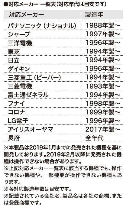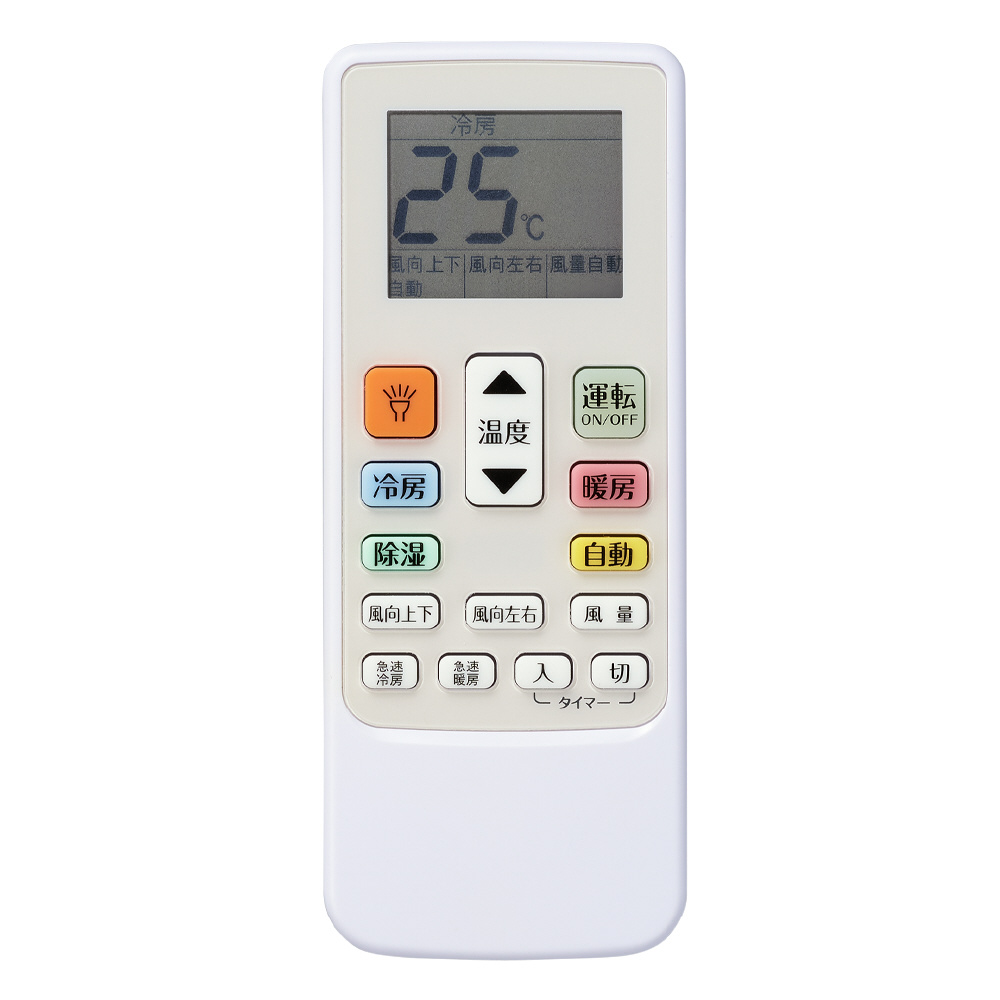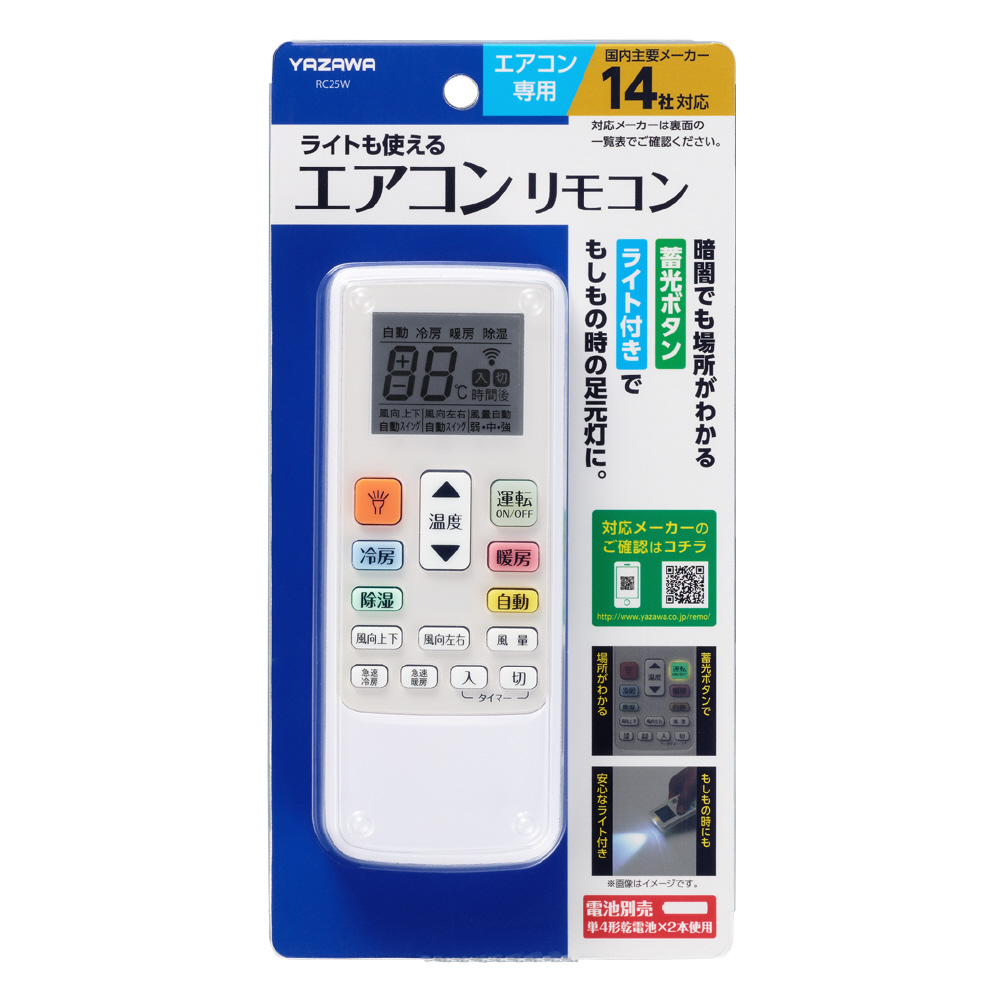 エアコンリモコン RC25W 国内主要メーカー14社対応 蓄光ボタン 足元灯になるライト付き 単4電池×2本(別売) [単4電池×2本(別売)]