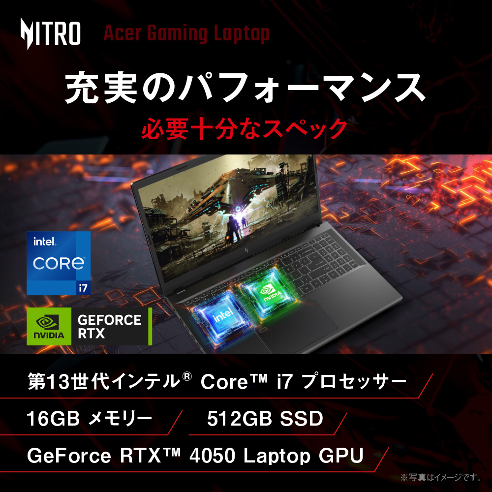 Acer ゲーミングノートパソコン Nitro V 15 GeForce RTX 4050 Laptop GPU 15.6インチ Core i7 16GBメモリー 512GB SSD フルHD 165Hz IPS 3ms sRGB 100% HDMI 2.1 Windows 11 Home ANV15-51-F76Y45/6