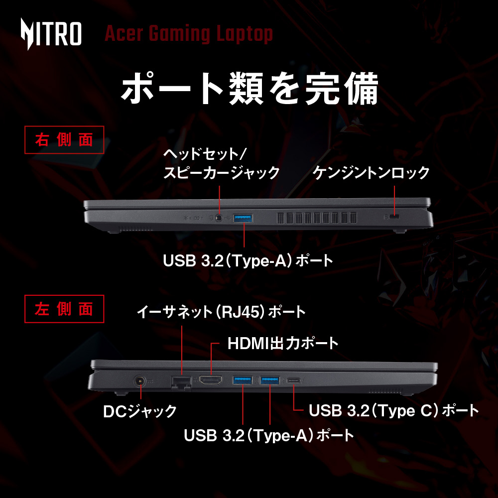 商品名 ANV15-51-F76Y45/6 ゲーミングノートパソコン Nitro V 15(RTX 4050) オブシディアンブラック