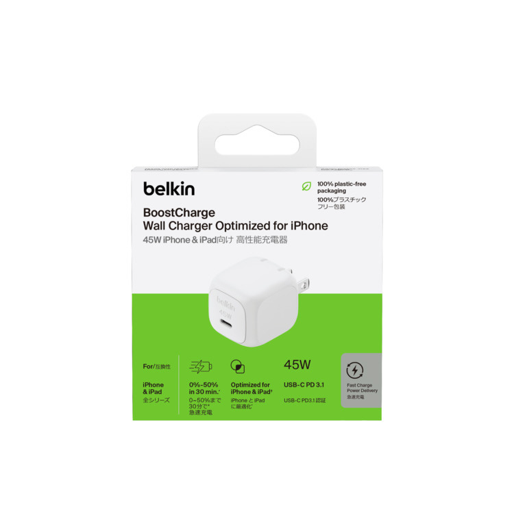| 商品名 | BoostCharge 45W USB-C 小型充電器 WCA013qcWH [1ポート /USB Power Delivery対応] |