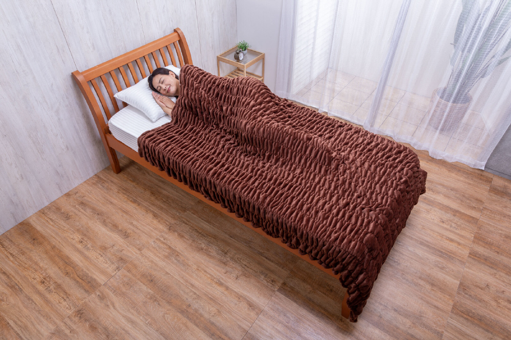 吸湿発熱糸を使用した伸縮生地の暖か毛布
