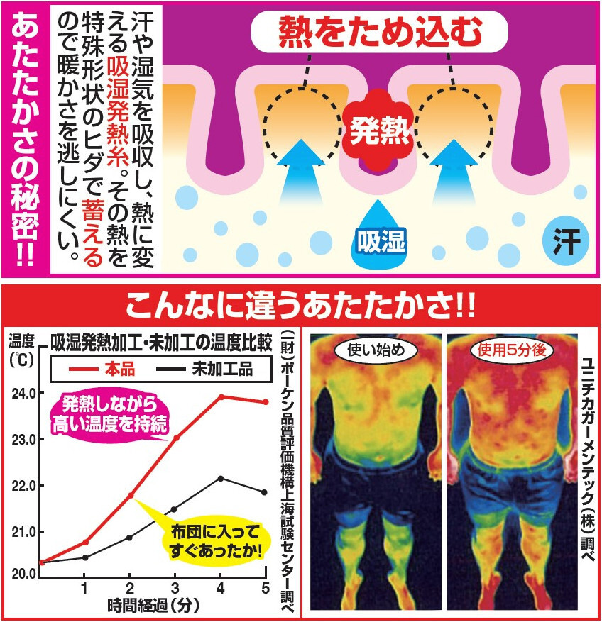 ●あたたかさの秘密!!吸湿発熱糸を使用し、特殊形状のヒダに発熱した空気を蓄えるのであたたかさを逃しにくい。