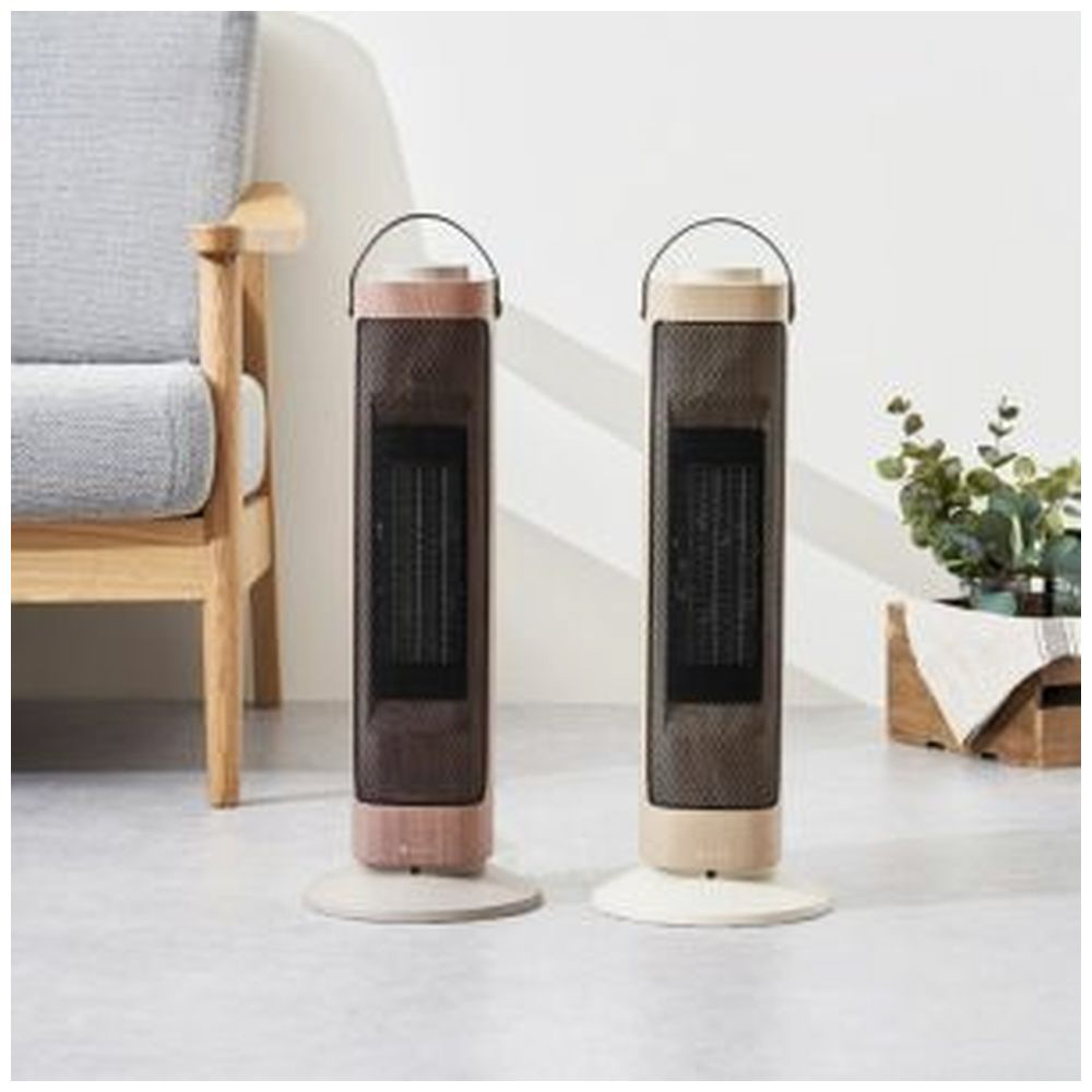 タワー型セラミックファンヒーター&ファン -Premium WOOD- グレージュウッド LCAWA006-GW [首振り機能]
