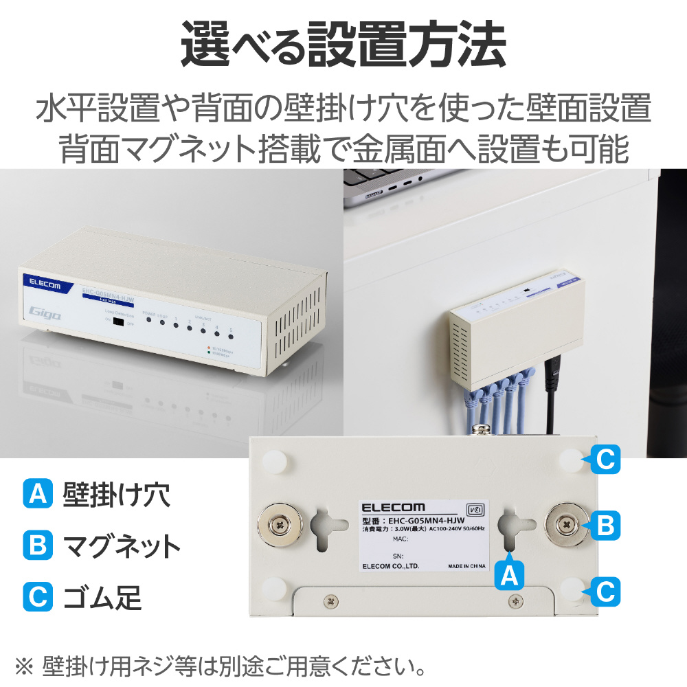 「Giga対応5ポートスイッチ(金属筐体/電源内蔵)」