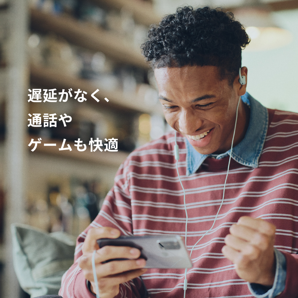 片耳約7.2g(コード含まず)と軽量なうえに耳掛け式の安定感により、快適な装着感を実現。