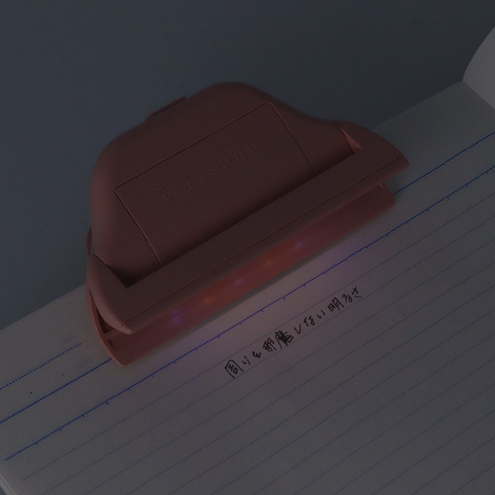 手元だけをそっと照らしてくれる、「ひかるクリップ terasuno」。柄は、テラスノ。カラーは、ピンク。