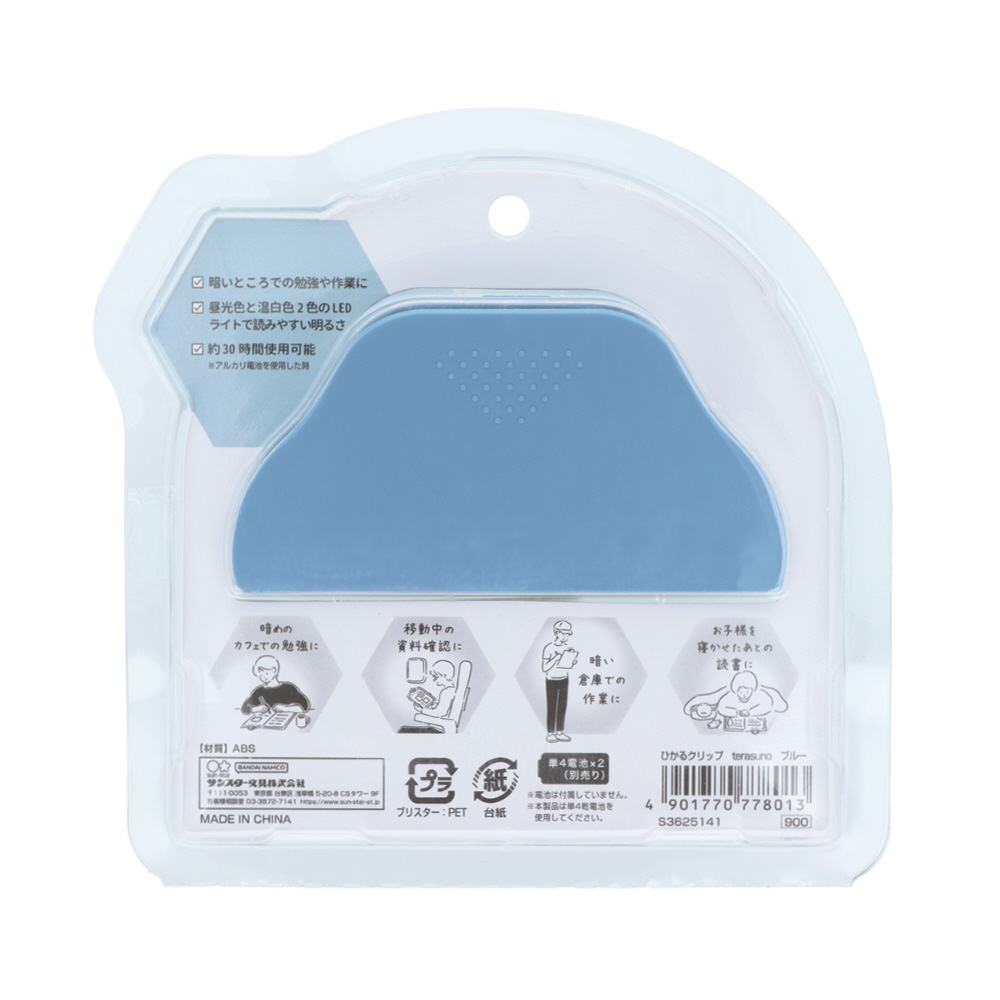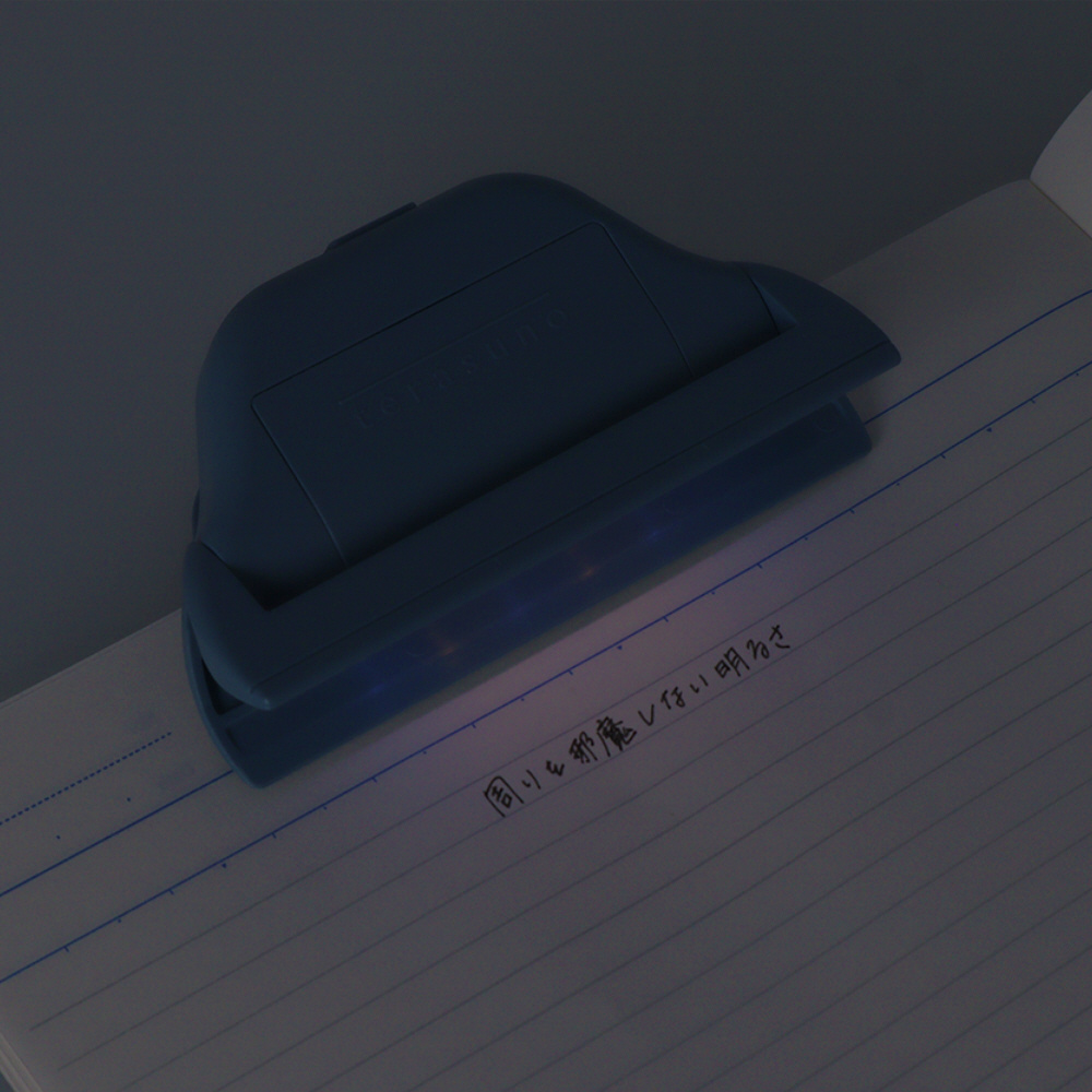 手元だけをそっと照らしてくれる、「ひかるクリップ terasuno」。柄は、テラスノ。カラーは、ブルー。