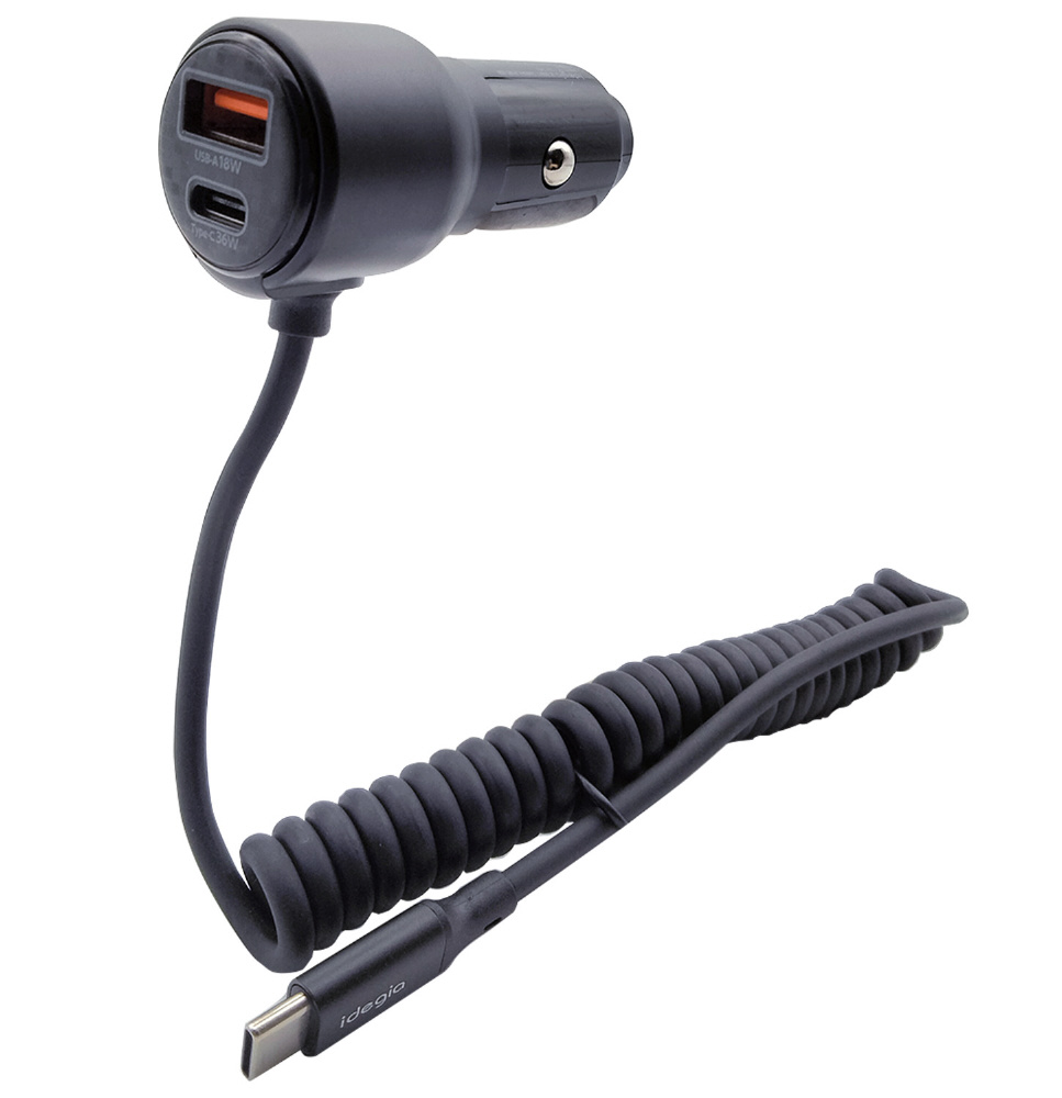 ダイレクト DC2ポート充電器 C+A カールコード idegia ブラック X-331