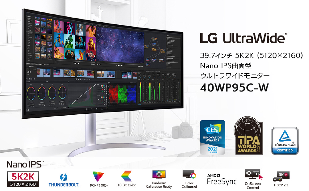 「39.7インチ5120×2160 IPS 2500R Thunderbolt 4対応ウルトラワイド液晶ディスプレイ」