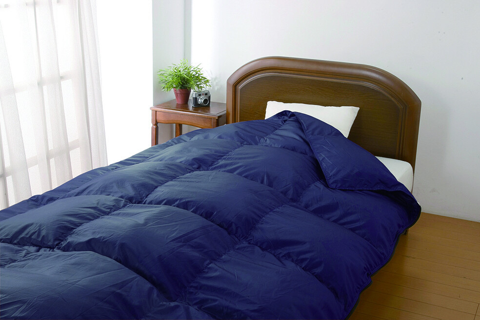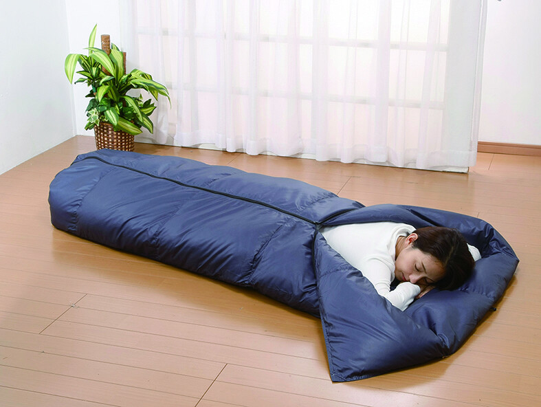 ふわふわの羽毛入りで軽く、あると便利な寝袋です。