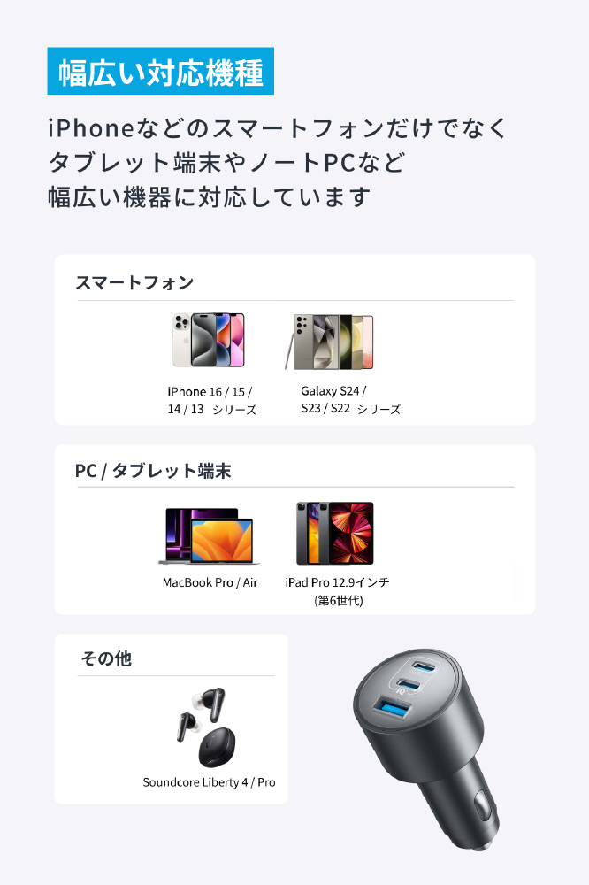 Anker Nano Car Charger with USB-C & USB-C ブラック B27375A1
