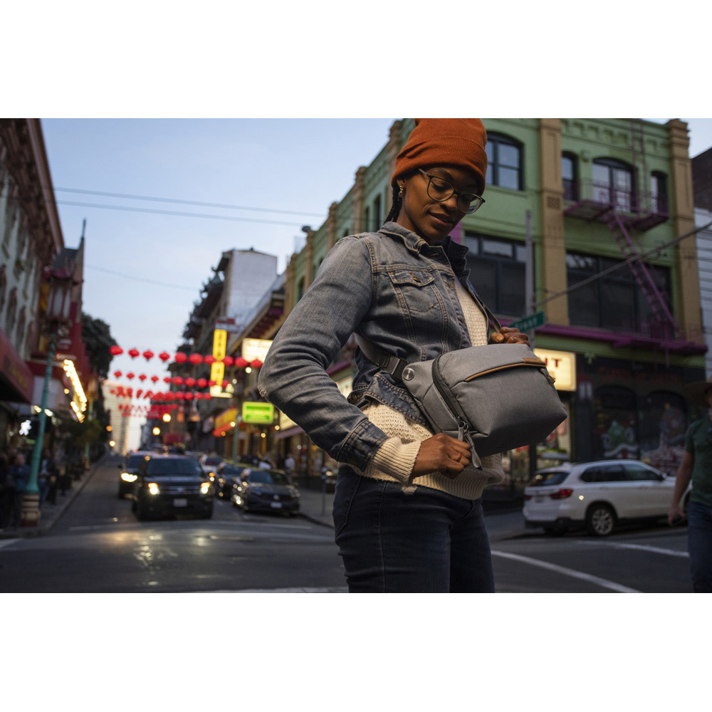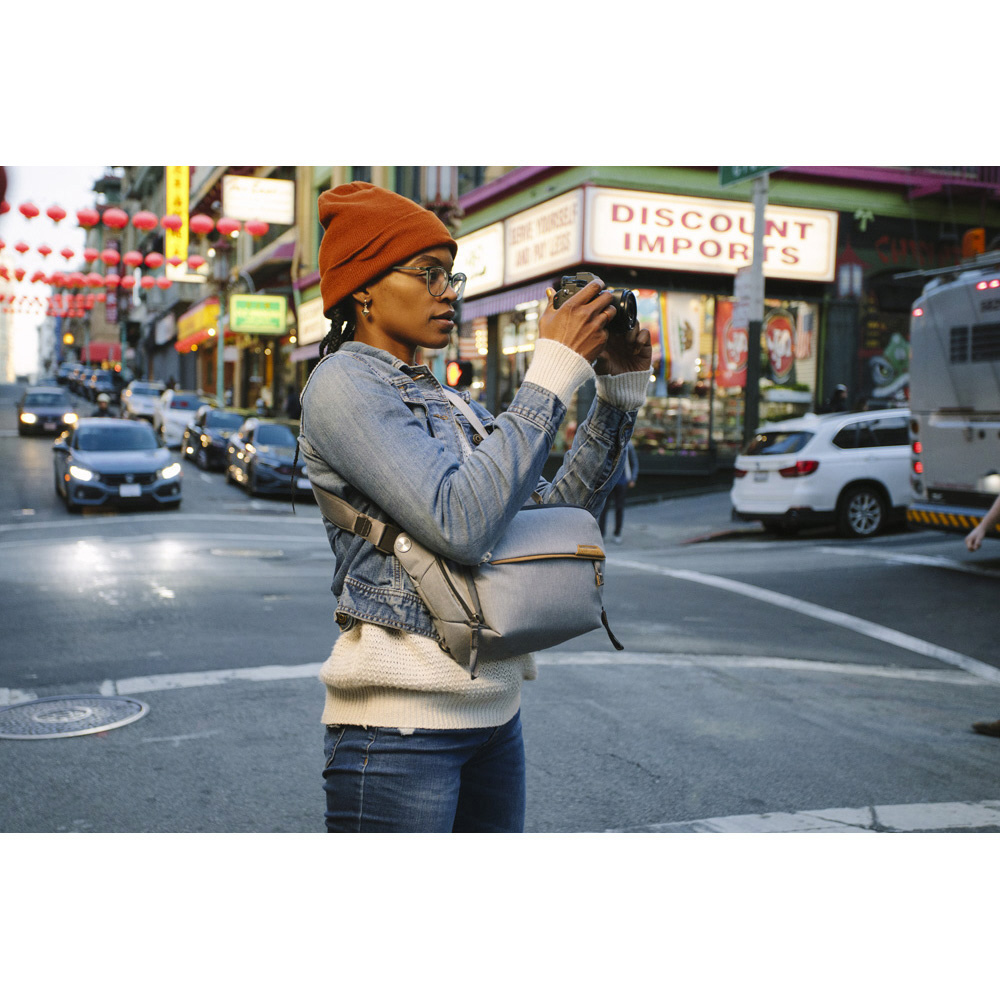 小型・軽量で、機動性に優れたスリングバッグ。コンパクトなミラーレスカメラとレンズなどを収納できます。