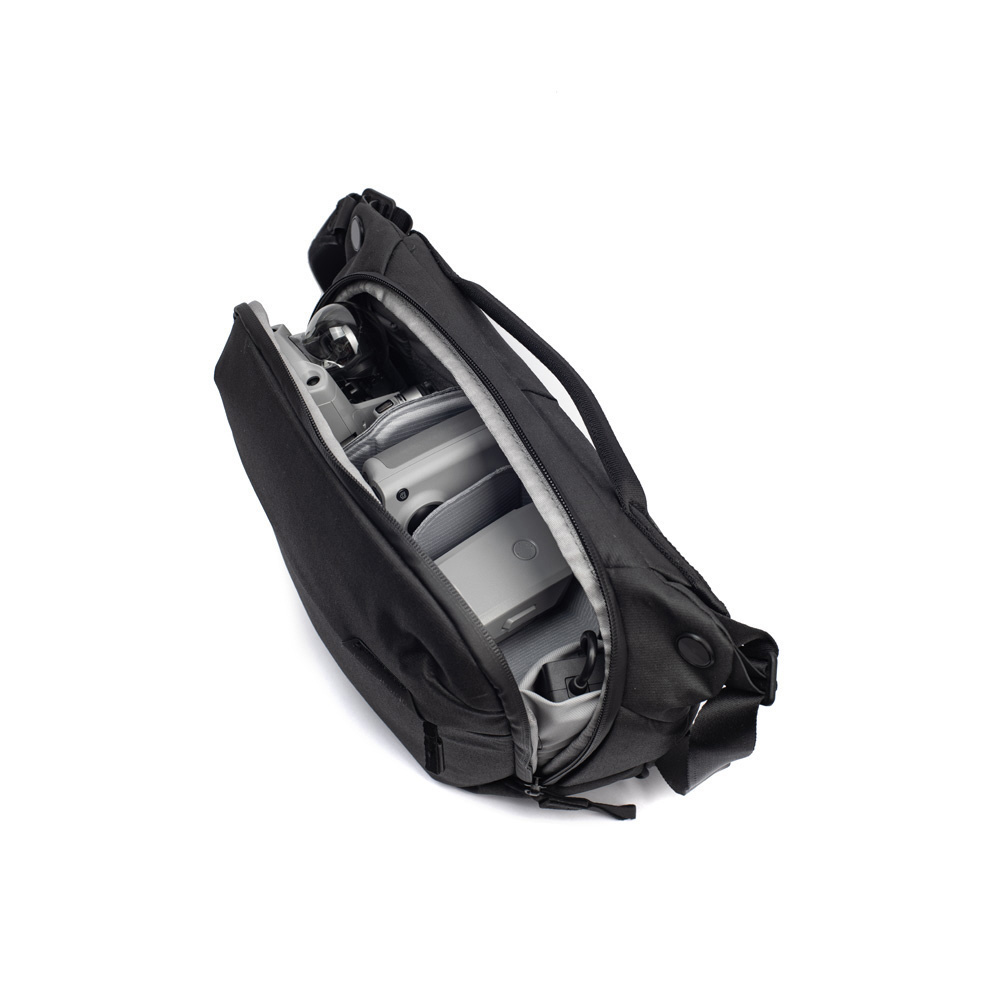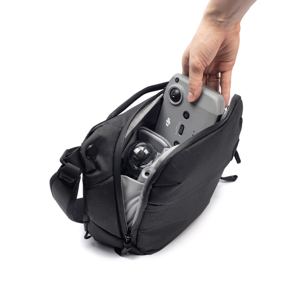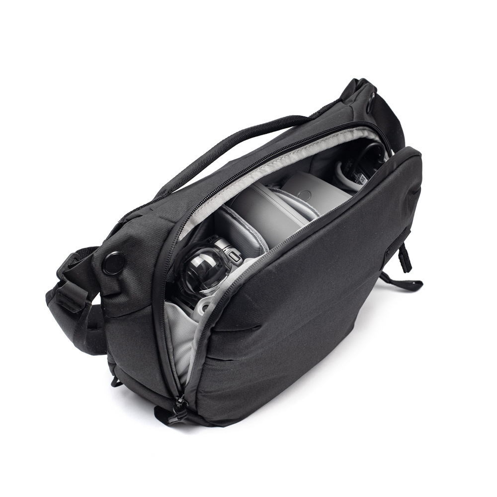 小型・軽量で、機動性に優れたスリングバッグ。一眼レフカメラとレンズなどを収納できます。