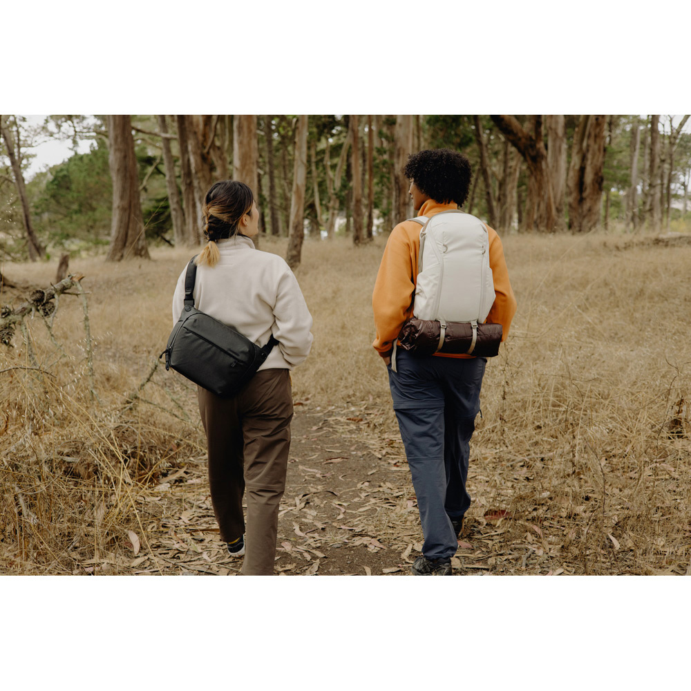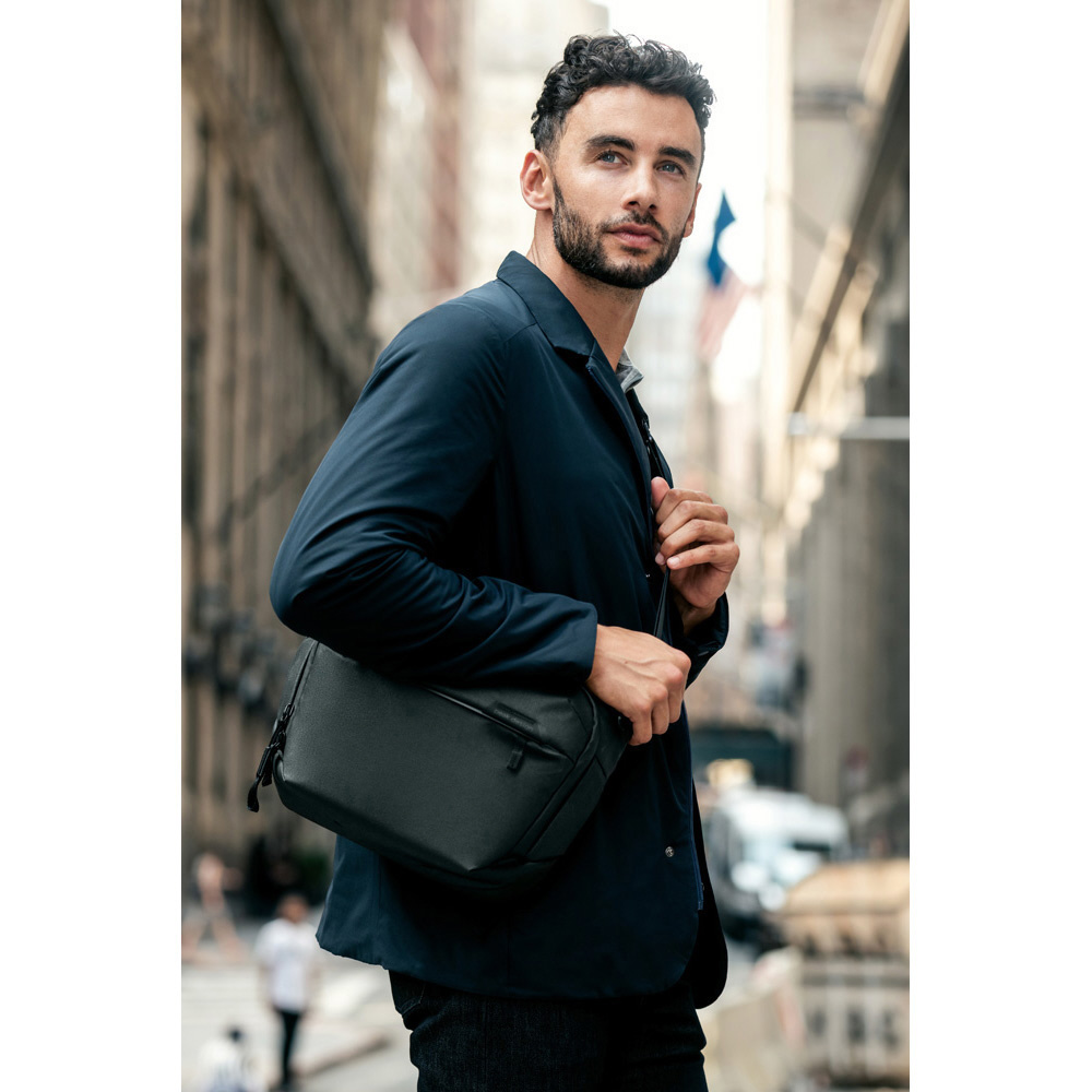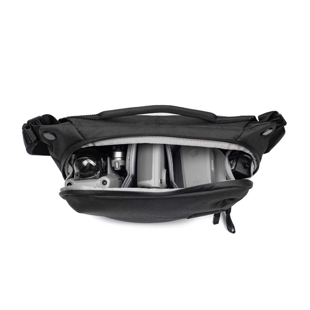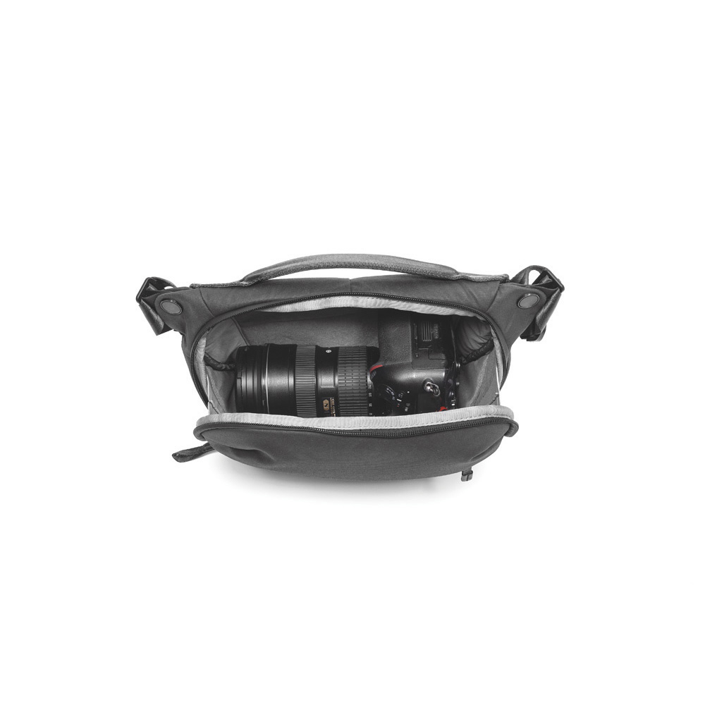 小型・軽量で、機動性に優れたスリングバッグ。一眼レフカメラとレンズなどを収納できます。