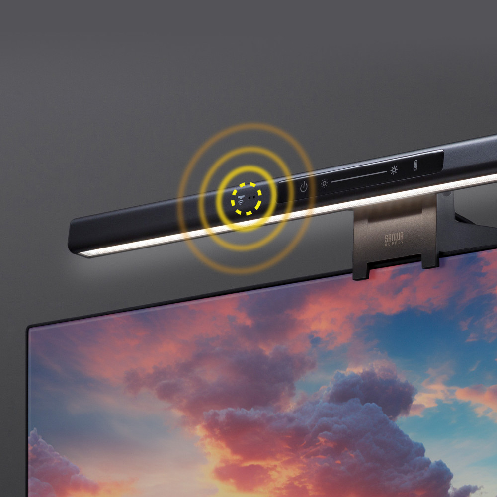 USB電源のモニター掛け式LEDライト。明るさ最大190ルーメン。湾曲モニターにも対応。赤外線感知で電源ON/OFFが可能。