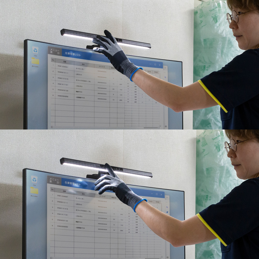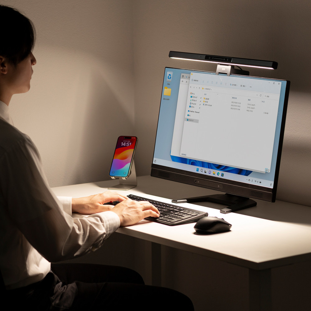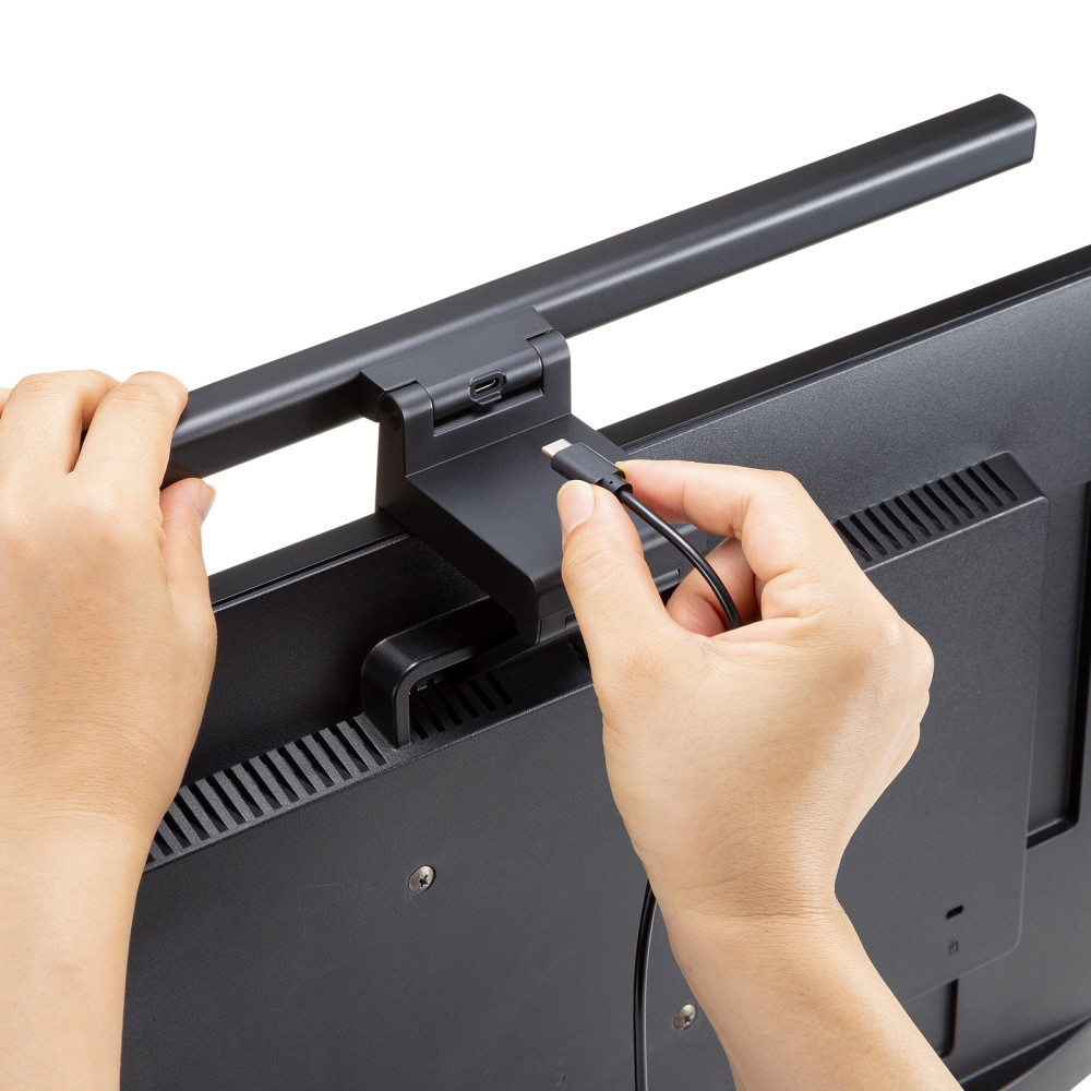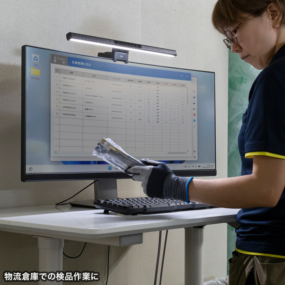 ■モニター上部に引っ掛けるだけで設置でき、手元を明るく照らすモニターライトです。