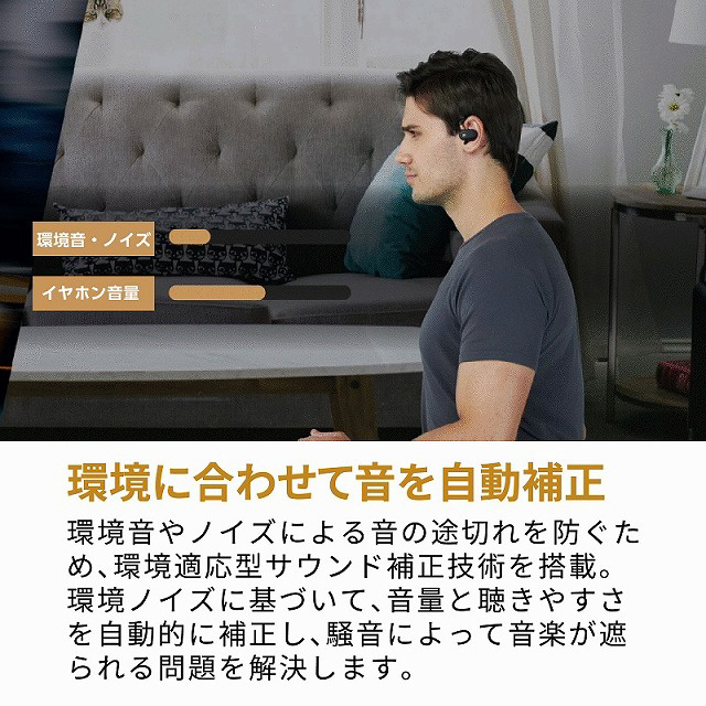 環境音やノイズによる音の途切れを防ぐため、環境適応型サウンド補正技術を搭載。